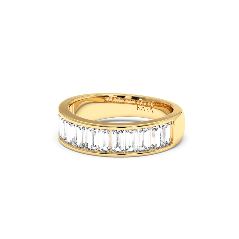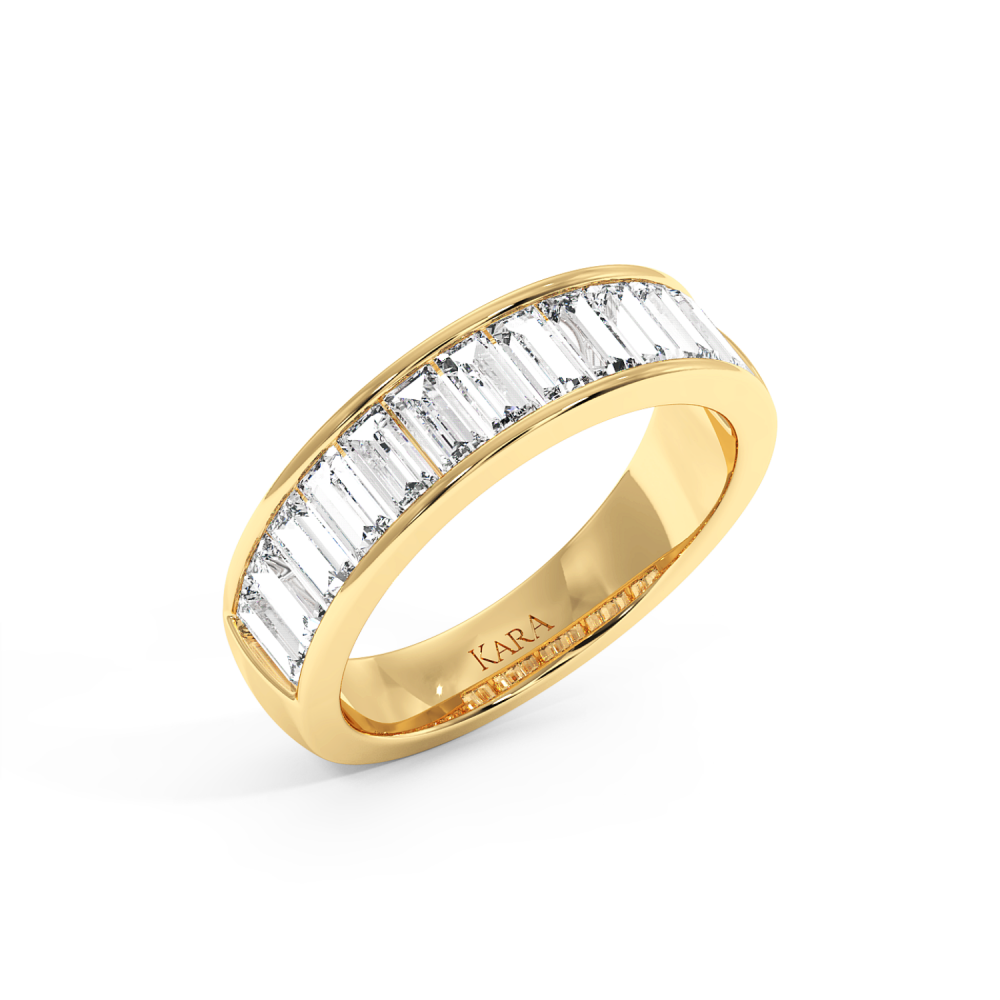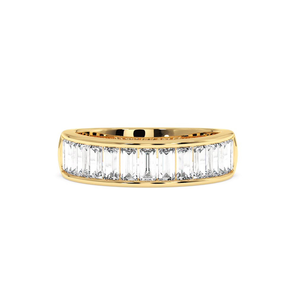 Inelul/Verigheta Semi Eternity din aur de 14 K cu diamante Baget cut de 1.43 ct. Greutatea este de 4.06 grame. Gramajele si caratajele sunt aproximative. Se poate face pe comanda si din aur de 18K. Putem modifica designul in functie de bugetul dumneavoastra.