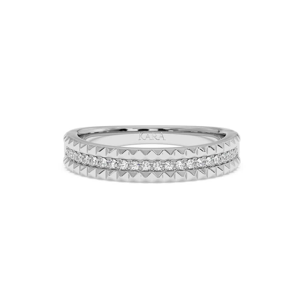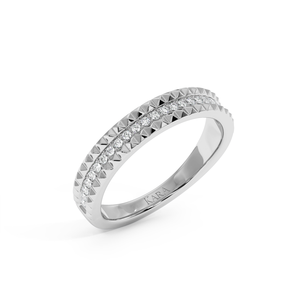 Inelul/Verigheta Eternity din aur alb de 14 K cu diamante de 0.16 ct. Greutatea este de 3.70 grame. Se poate face pe comanda si din aur de 18K. Putem modifica design-ul in functie de bugetul dumneavoastra. Putem alege caracteristicile diamantelor (taietura, culoarea, claritate).