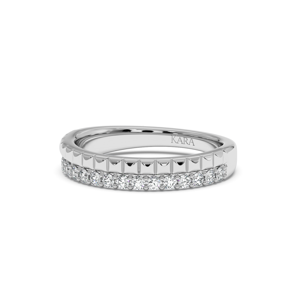 Inelul/Verigheta Eternity din aur alb de 14 K cu diamante de 0.33 ct. Greutatea este de 3.69 grame. Se poate face pe comanda si din aur de 18K. Putem modifica design-ul in functie de bugetul dumneavoastra. Putem alege caracteristicile diamantelor (taietura, culoarea, claritate).