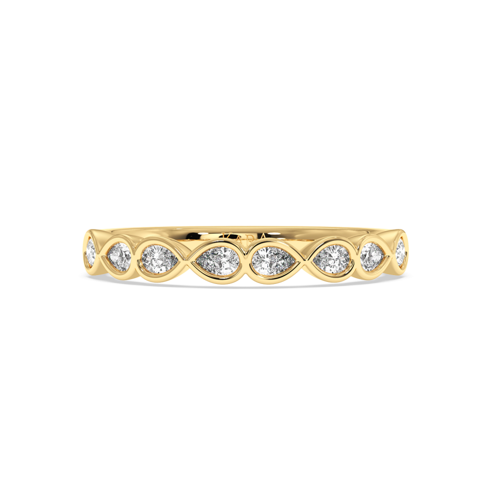 Inelul/Verigheta Semi Eternity din aur de 14 K cu diamante de 0.43 ct. Greutatea este de 2.07 grame. Gramajele si caratajele sunt aproximative. Se poate face pe comanda si din aur de 18K. Putem modifica designul in functie de bugetul dumneavoastra.