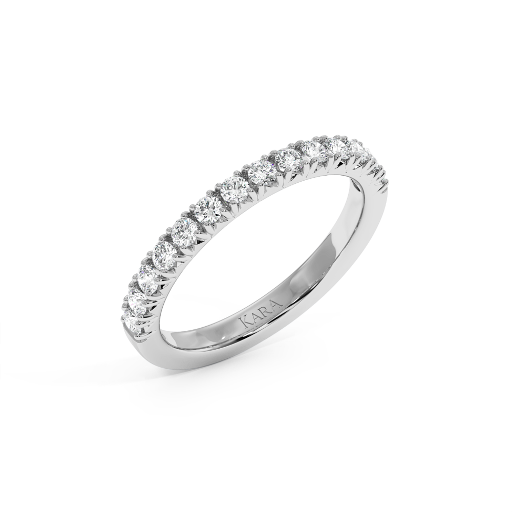 Inelul/Verigheta Eternity din aur alb de 14 K cu diamante de 0.54 ct. Greutatea este de 2.55 grame. Se poate face pe comanda si din aur de 18K. Putem modifica designul in functie de bugetul dumneavoastra. Putem alege caracteristicile diamantelor (taietura, culoarea, claritate).