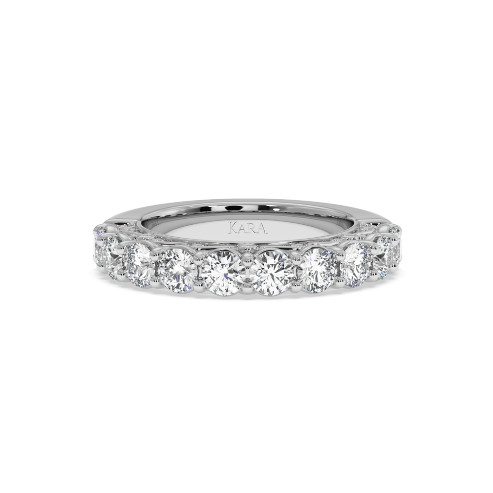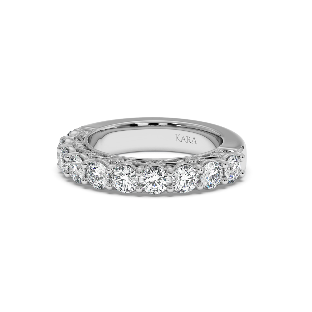 Inelul/Verigheta Eternity din aur alb de 14 K cu diamante de 1.70 ct. Greutatea este de 7.50 grame. Se poate face pe comanda si din aur de 18K. Putem modifica design-ul in functie de bugetul dumneavoastra. Putem alege caracteristicile diamantelor (taietura, culoarea, claritate).