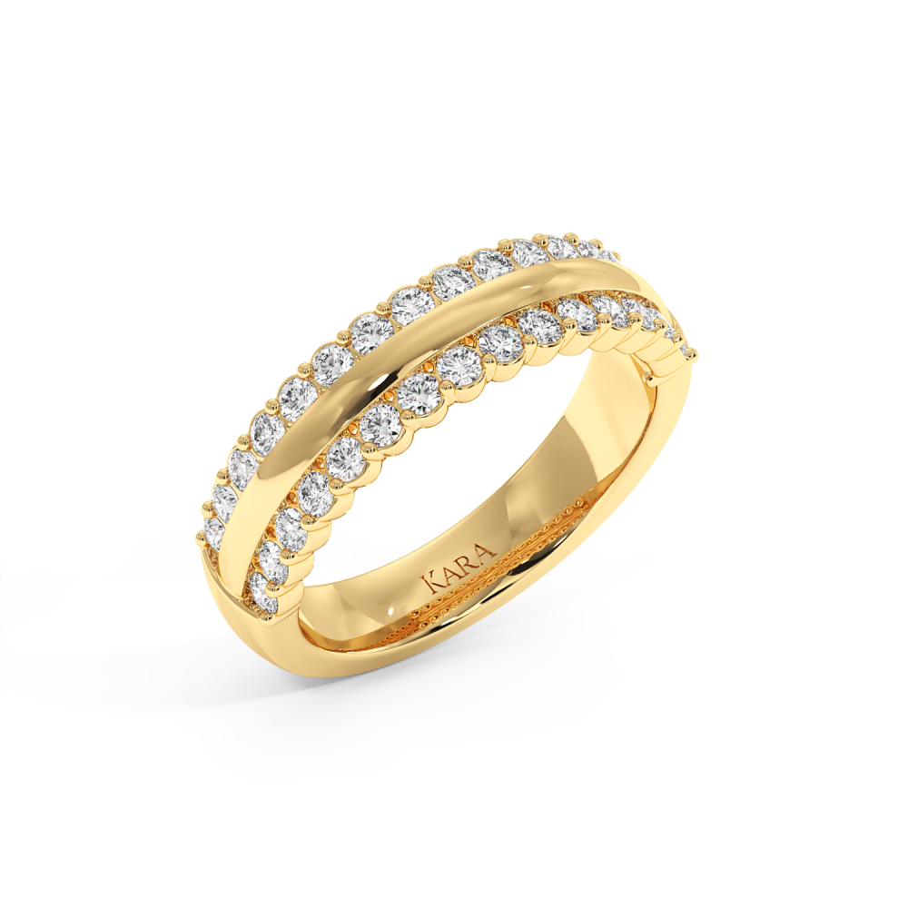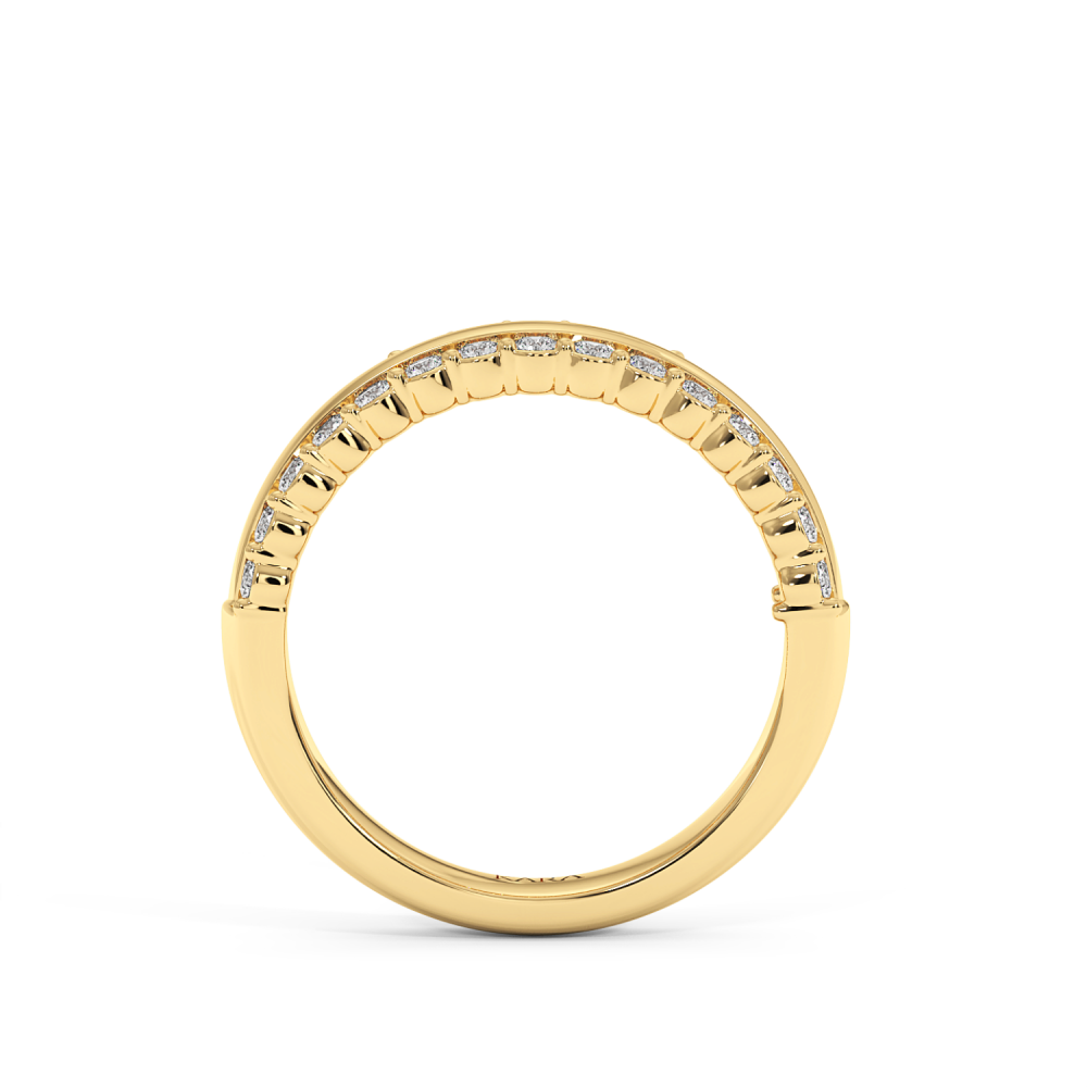 Inelul/Verigheta Semi Eternity din aur de 14 K cu diamante de 0.69 ct. Greutatea este 4.76 grame. Gramajele si caratajele sunt aproximative. Se poate face pe comanda si din aur de 18K. Putem modifica designul in functie de bugetul dumneavoastra.
