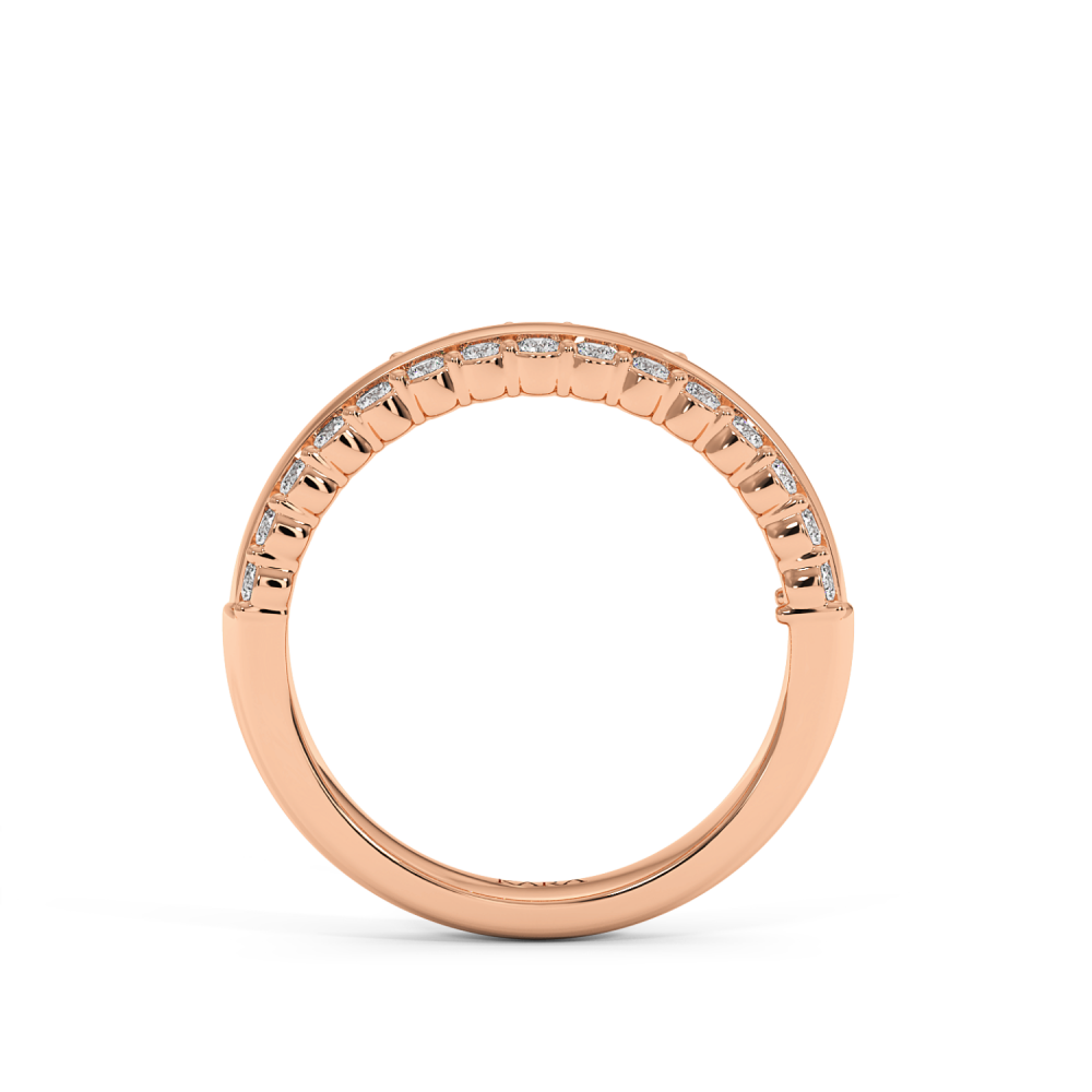 Inelul/Verigheta Semi Eternity din aur de 14 K cu diamante de 0.69 ct. Greutatea este 4.76 grame. Gramajele si caratajele sunt aproximative. Se poate face pe comanda si din aur de 18K. Putem modifica designul in functie de bugetul dumneavoastra.