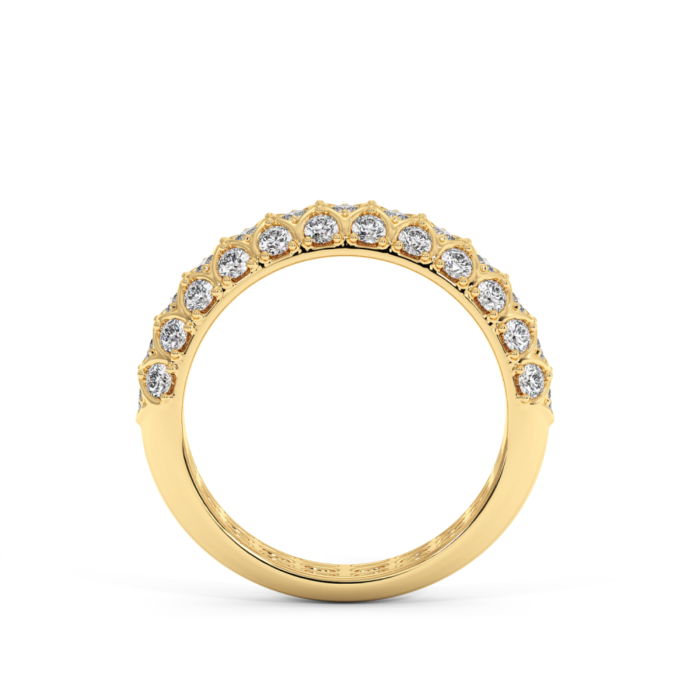 Inelul/Verigheta Semi Eternity din aur de 14 K cu diamante de 0.99 ct. Greutatea este de 3.20 grame. Gramajele si caratajele sunt aproximative. Se poate face pe comanda si din aur de 18K. Putem modifica designul in functie de bugetul dumneavoastra.
