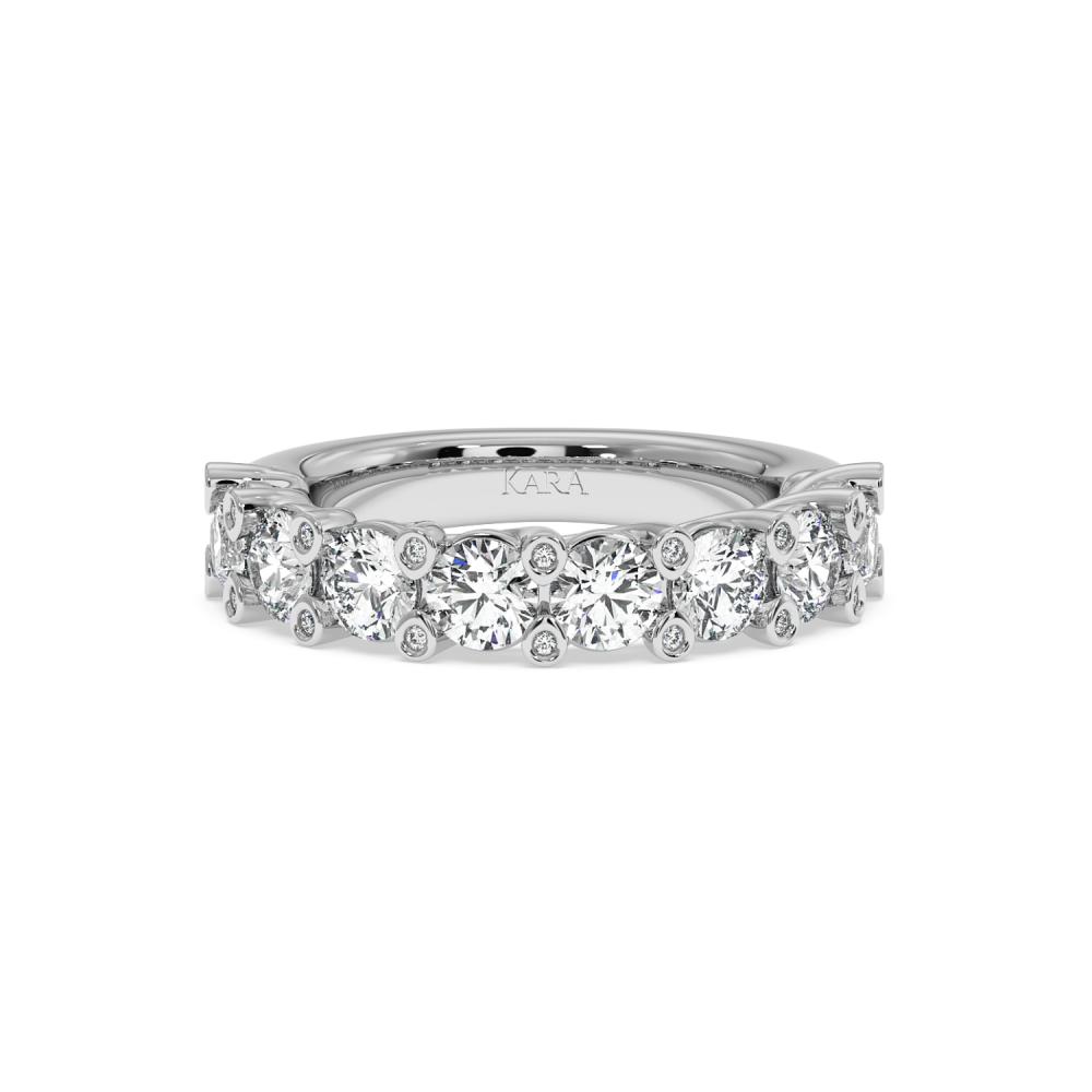 Inelul/Verigheta Eternity din aur alb de 14 K cu diamante de 2.07 ct. Greutatea este de 6.31 grame. Se poate face pe comanda si din aur de 18K. Putem modifica design-ul in functie de bugetul dumneavoastra. Putem alege caracteristicile diamantelor (taietura, culoarea, claritate).