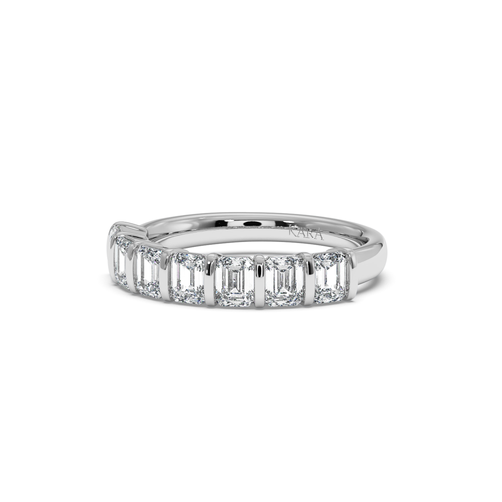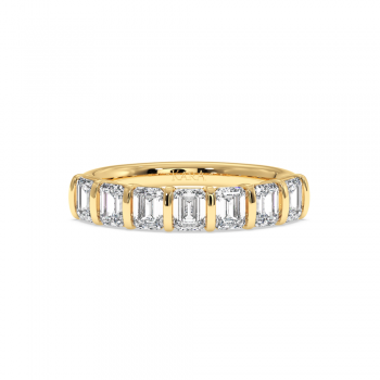 Inel Verigheta Semi Eternity din aur de 14K cu diamante Emerald cut de 1.39ct. Greutatea inelului este de aproximativ 3.87 grame. Gramajele si caratajele sunt aproximative. Inelul se poate face pe comanda si din aur de 18K. Putem modifica designul in functie de bugetul dumneavoastra.