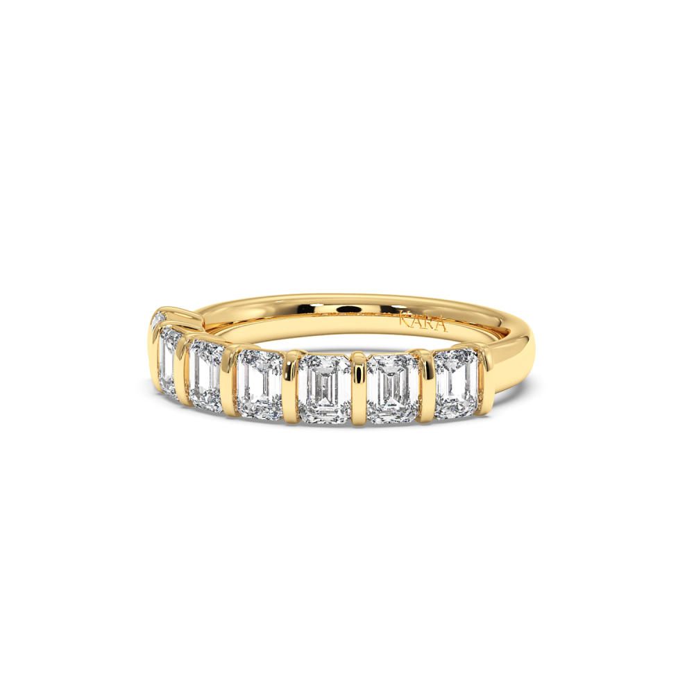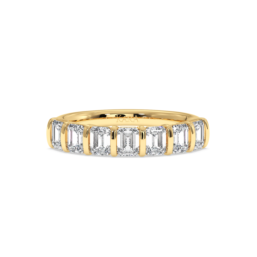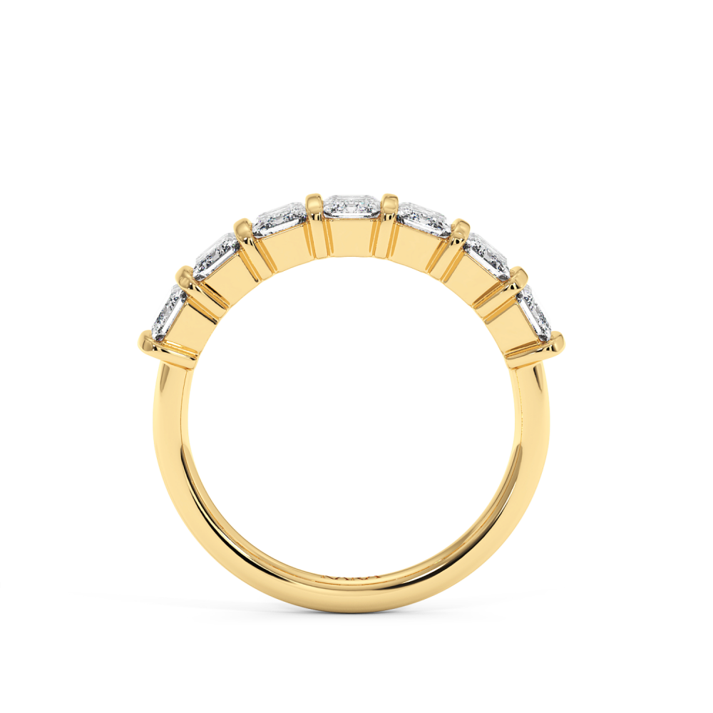 Inel Verigheta Semi Eternity din aur de 14K cu diamante Emerald cut de 1.39ct. Greutatea inelului este de aproximativ 3.87 grame. Gramajele si caratajele sunt aproximative. Inelul se poate face pe comanda si din aur de 18K. Putem modifica designul in functie de bugetul dumneavoastra.