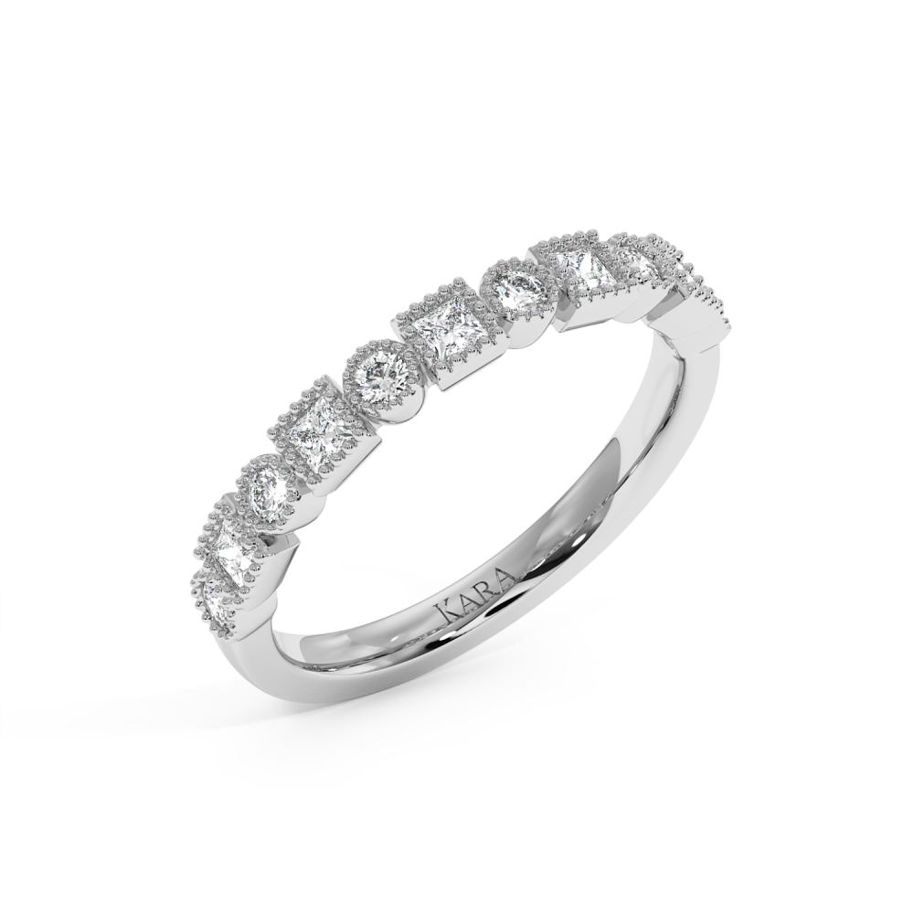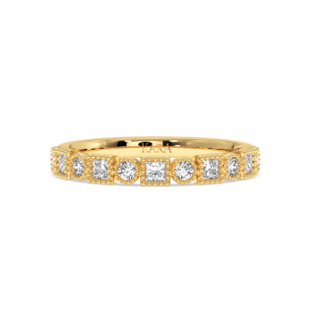 Inelul/Verigheta Semi Eternity din aur de 14 K cu diamante Princess cut de 0.25 ct si diamante rotunde de 0.21 ct. Greutatea este de 2.54 grame. Gramajele si caratajele sunt aproximative. Se poate face pe comanda si din aur de 18K. Putem modifica designul in functie de bugetul dumneavoastra.