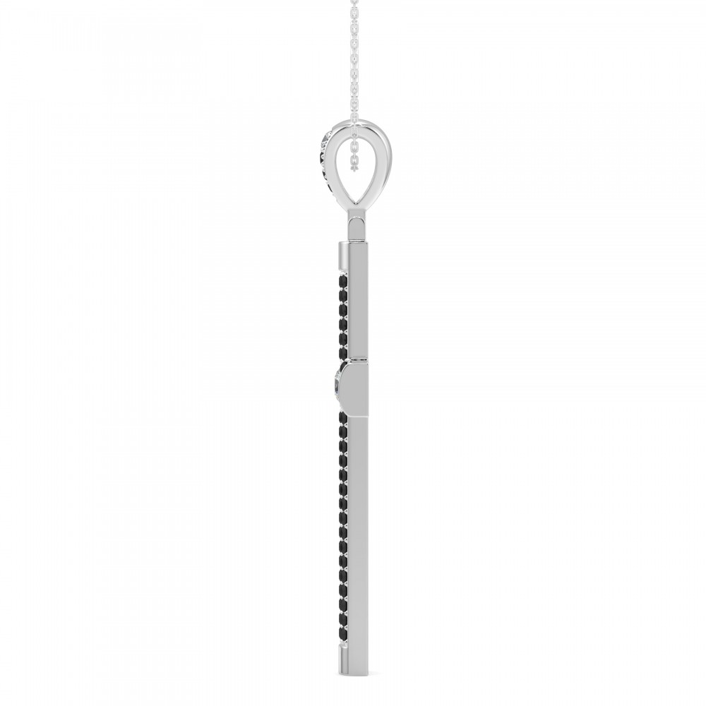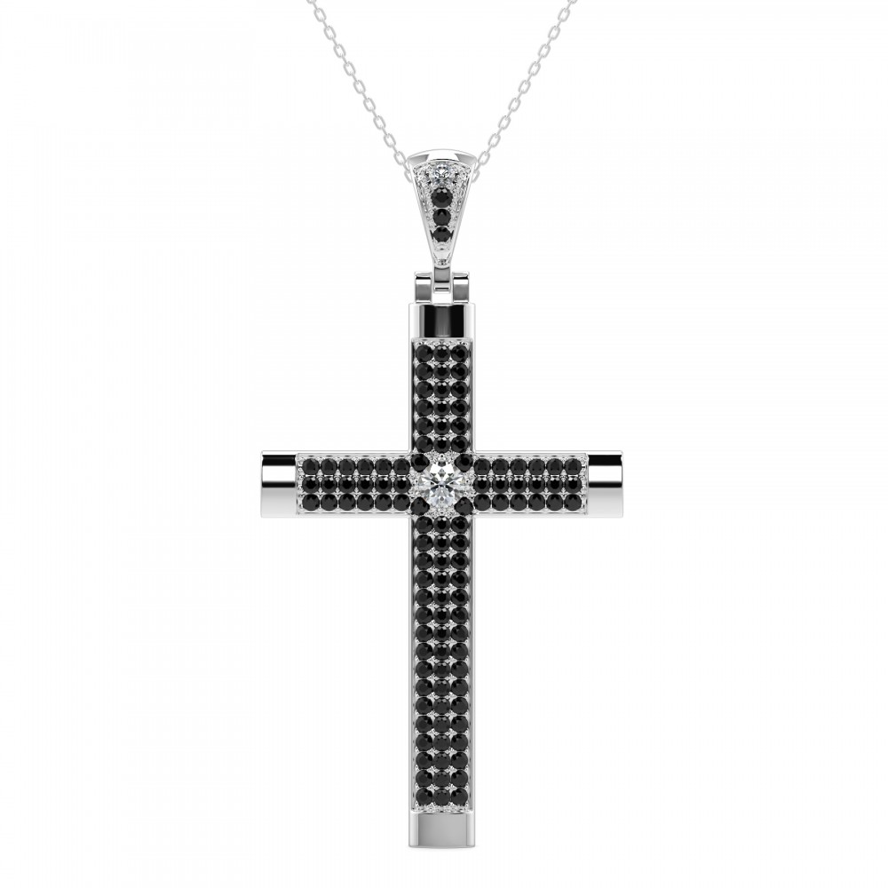 Pandantiv cruciulita din aur alb de 14 K, cu diamante albe de 0.20 ct. diamante negre 1.01ct. Greutatea colierului este de 7.43 grame.