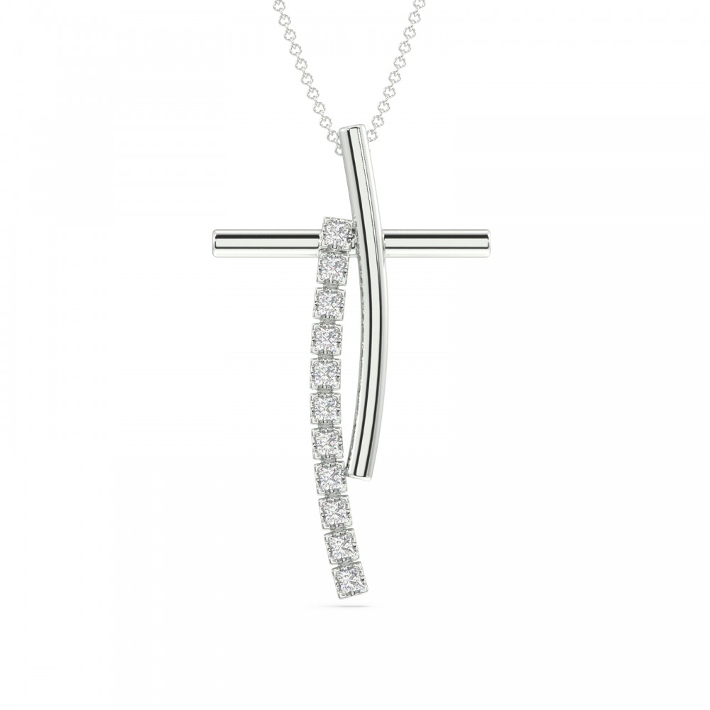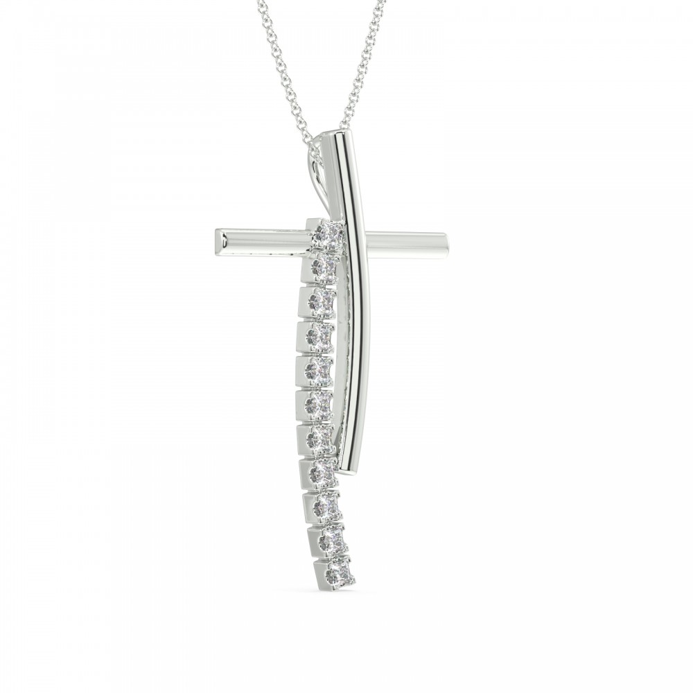Pandantiv cruciulita din aur alb de 14 K, cu diamante de 0.47 ct. Greutatea este de 4.10 grame.