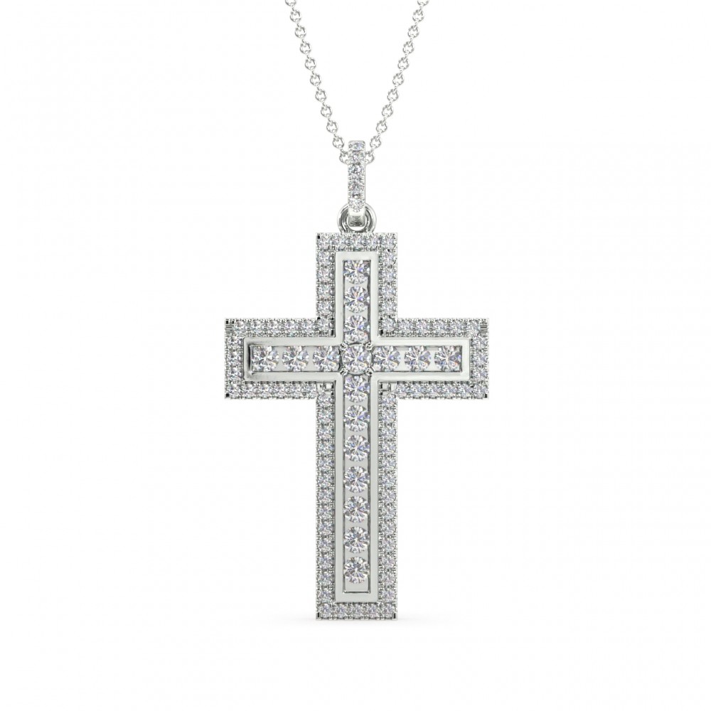 Pandantiv Cross din aur alb de 14 K, cu diamante de 0.73 ct. Greutatea colierului este de aproximativ 5.00 grame. Lungimea este de 3 cm