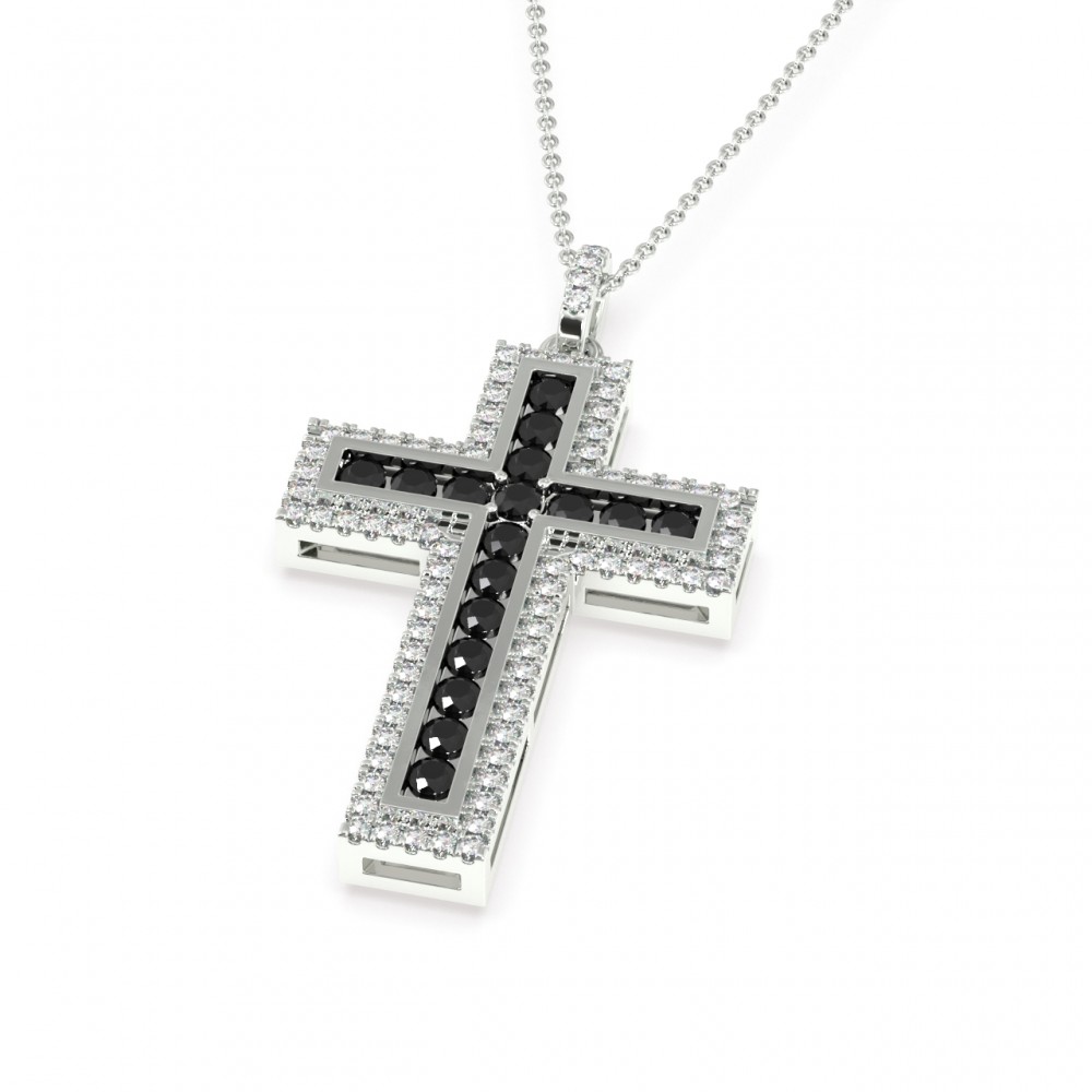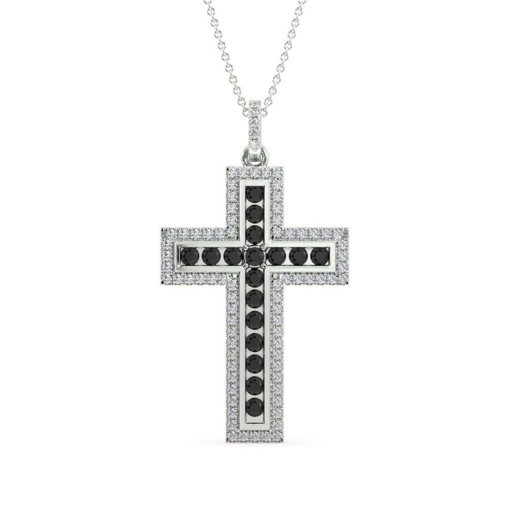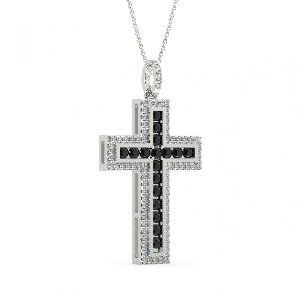 Pandantiv Cross din aur alb de 14 K, cu diamante negre de 0.44 ct. si diamante albe de 0.29 ct . Greutatea colierului este de aproximativ 5 grame. Lungimea este de 3 cm