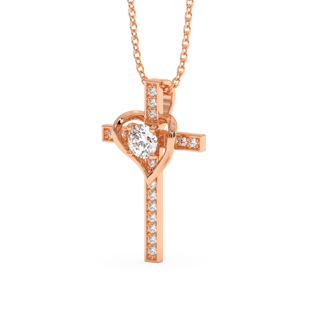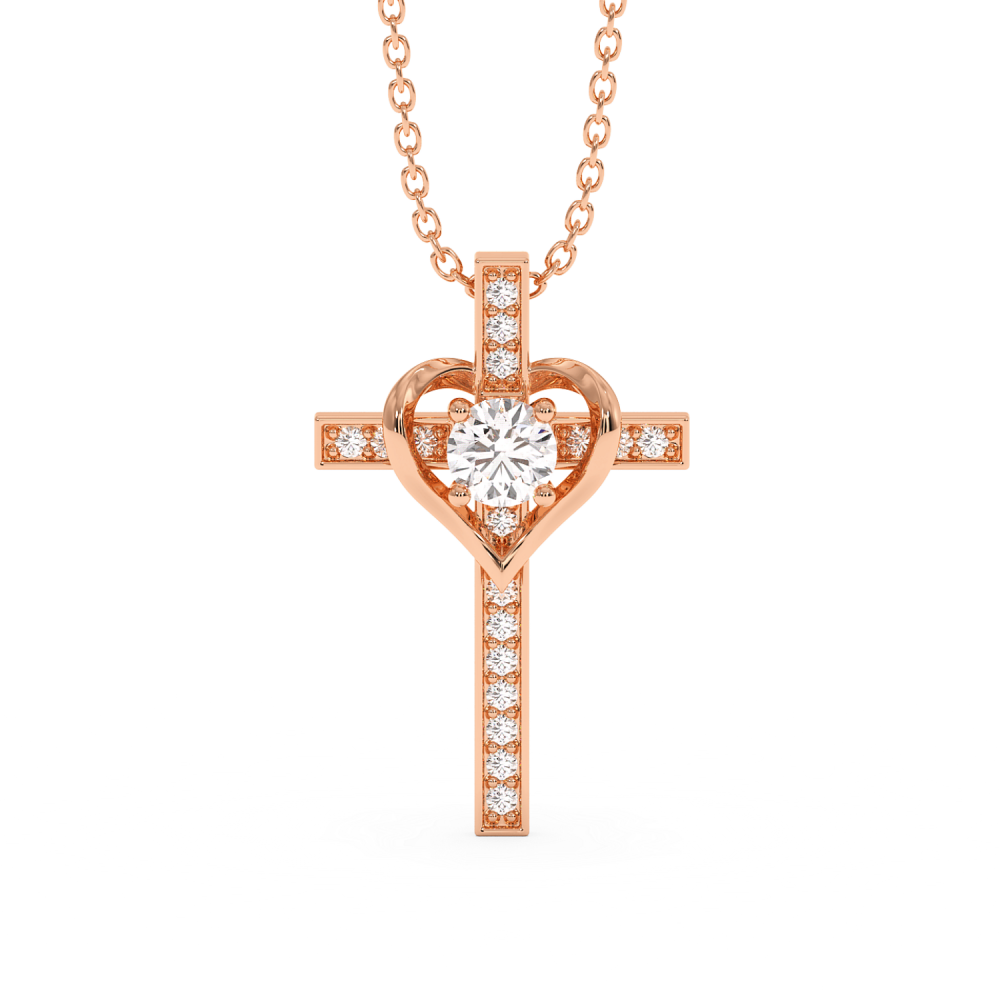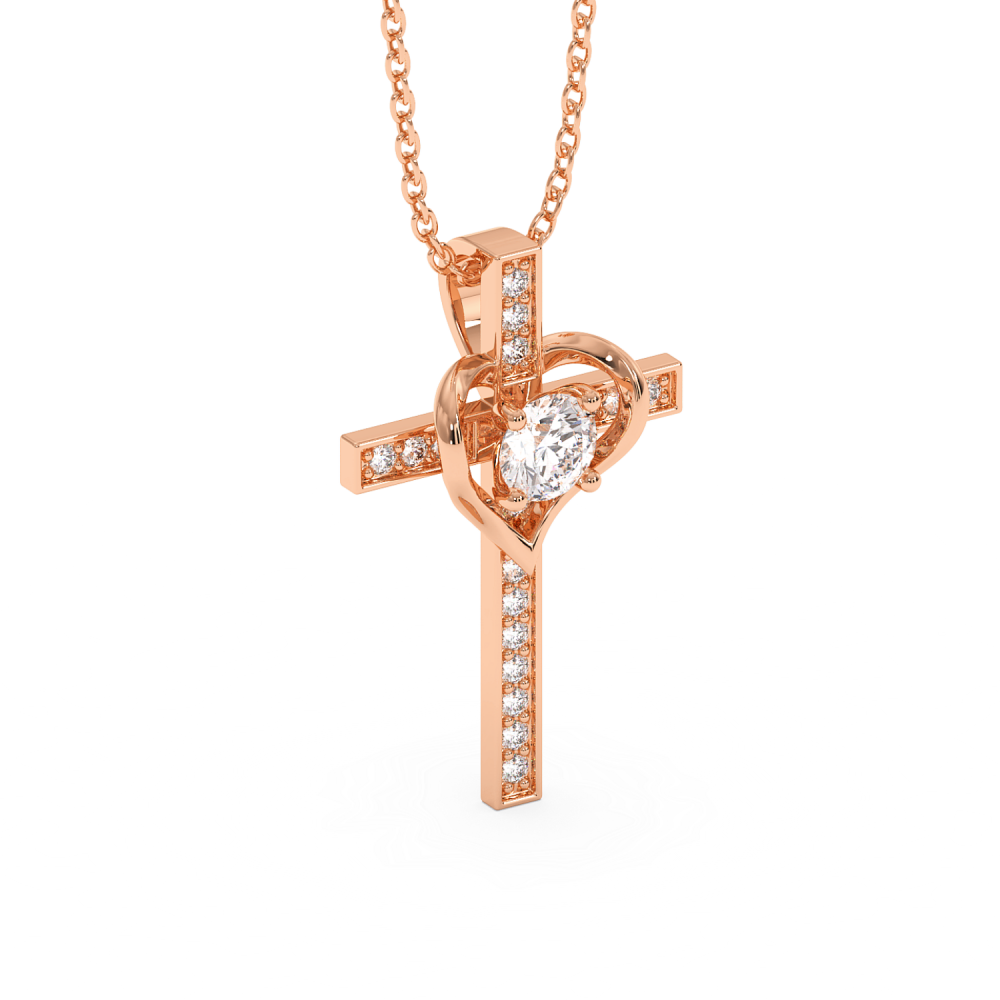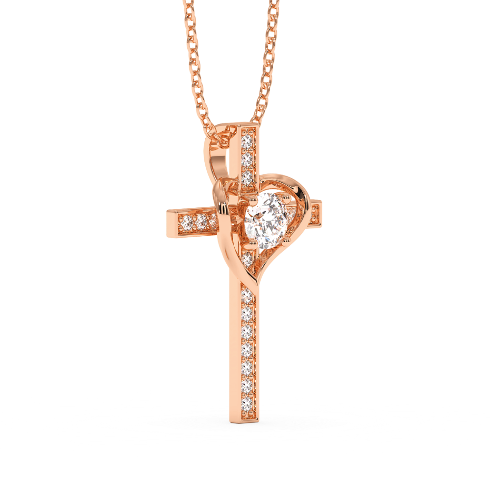 Pandantiv cruciulita din aur de 14 K, cu diamant central de 0.28ct si diamante laterale de 0.39ct. Greutatea cruciulitei este de aproximativ 1.30 grame.