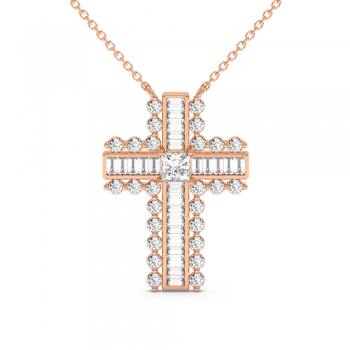 Pandantiv cruciulita din aur de 14 K, cu Diamante Baget de 0.32 ct, Diamante Princess de 0,20 ct si Diamante Rotunde de 0.47 ct. Greutatea cruciulitei este de aproximativ 3,7 grame.