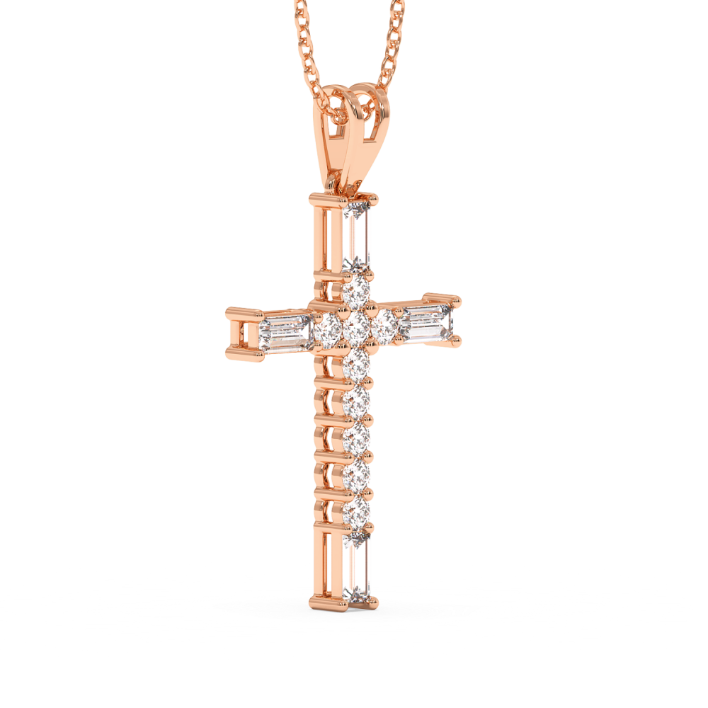 Pandantiv Cruciulita cu Diamante Baget de 0.44ct si Diamante Rotunde de 0.31ct