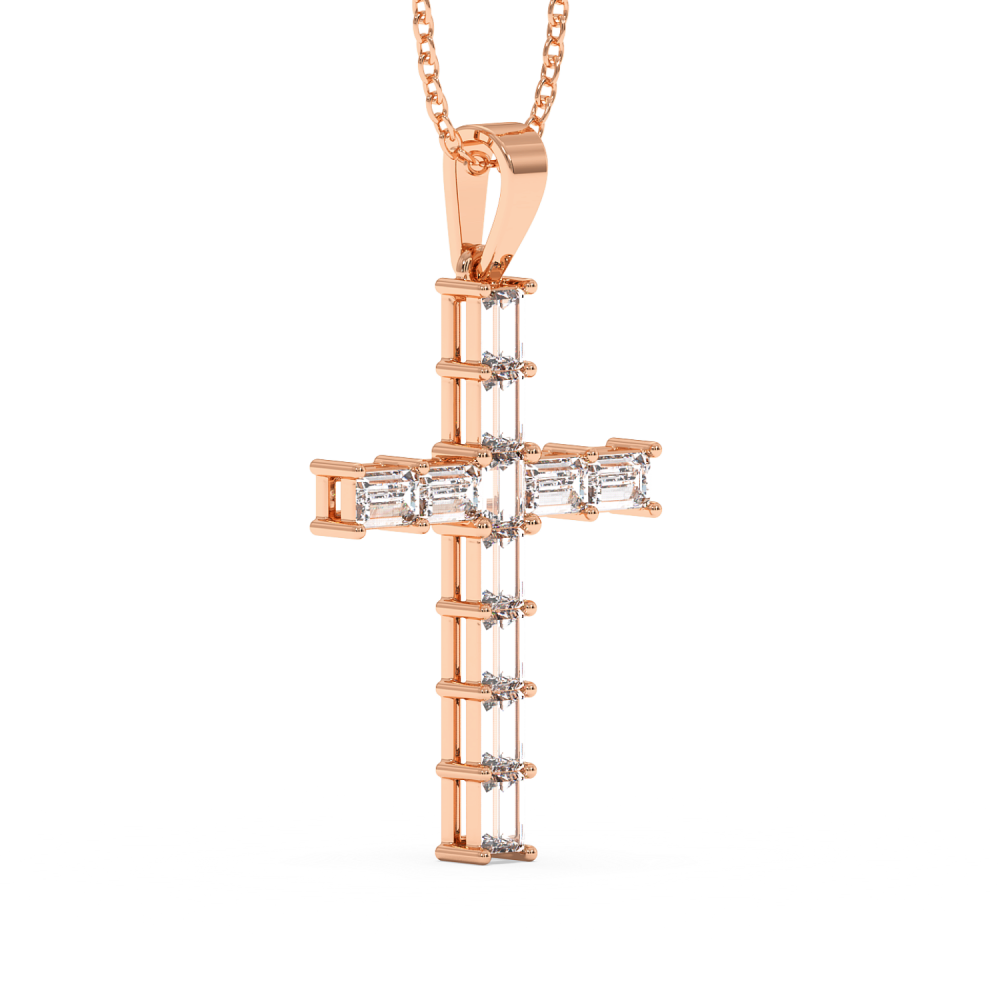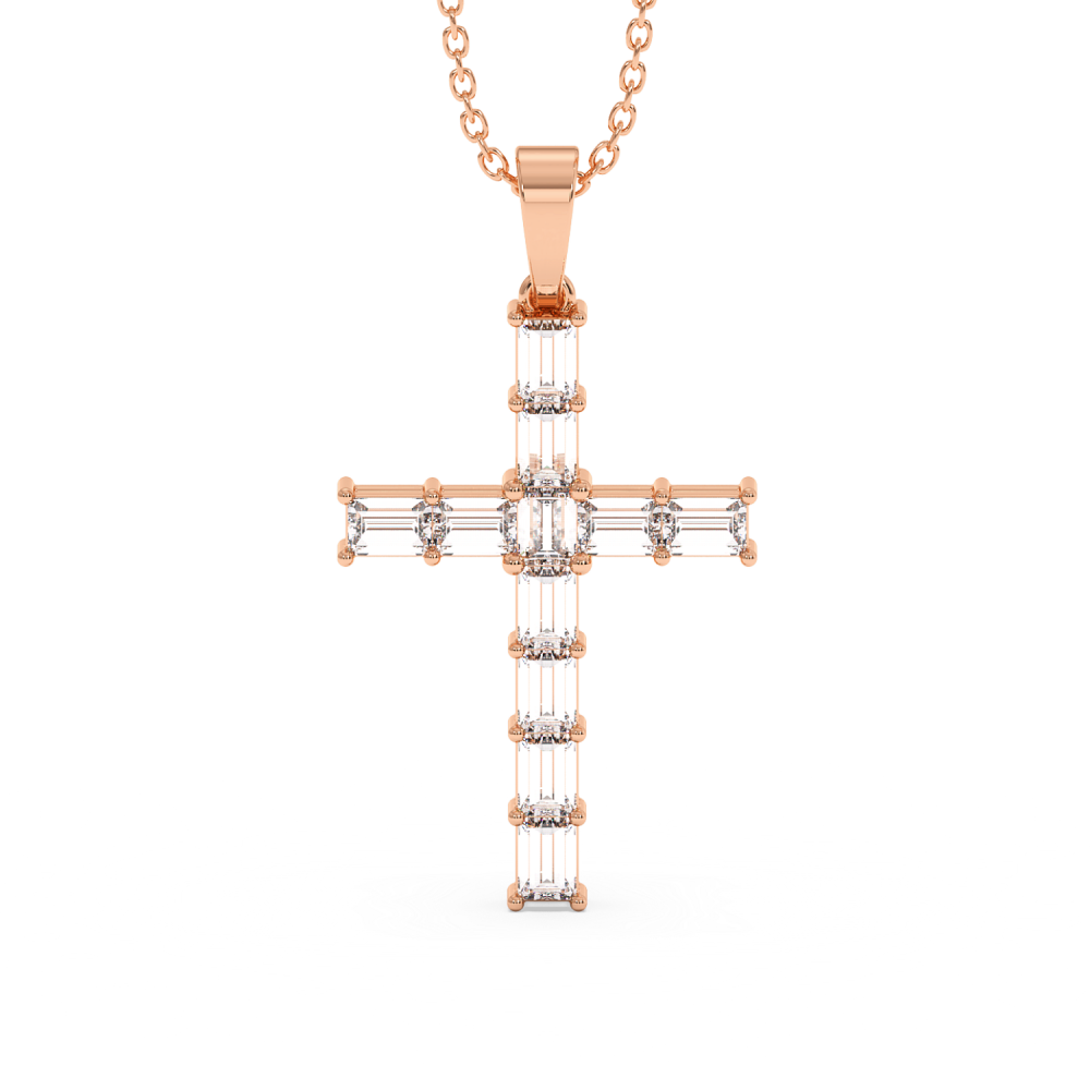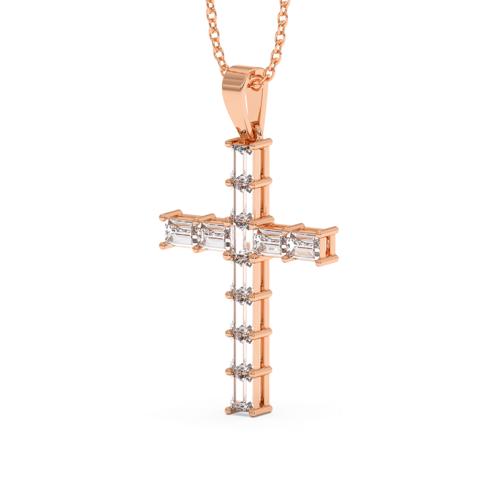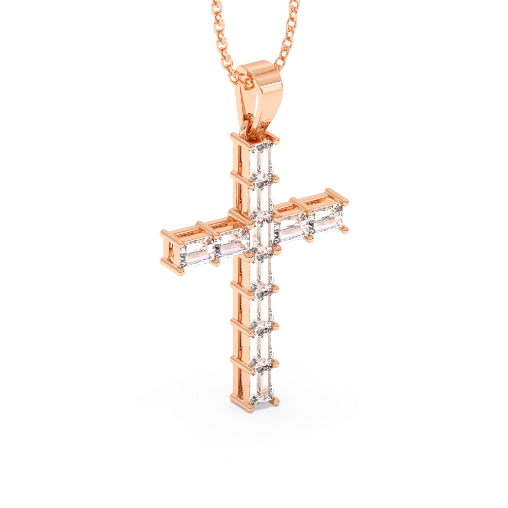 Pandantiv cruciulita din aur de 14 K, cu diamante baget de 1.11ct. Greutatea cruciulitei este de aproximativ 1.80 grame.