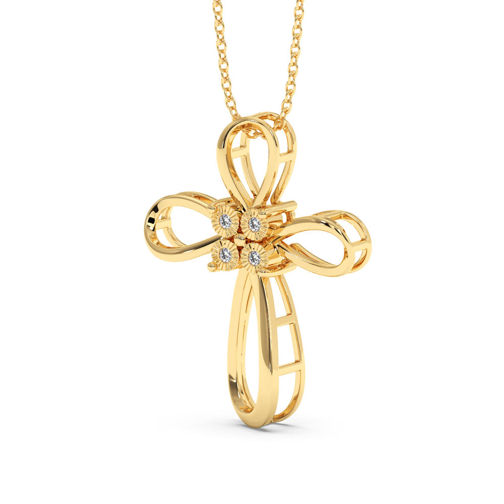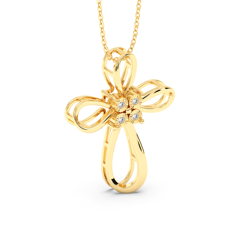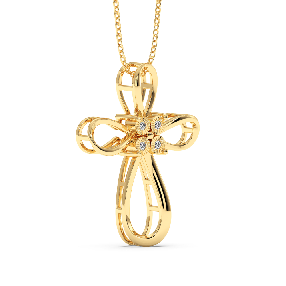 Pandantiv cruciulita din aur alb de 14 K, cu diamante 0.06ct. Greutatea este de aproximativ 2.83 grame. Lungimea cruciulitei este de 2.76cm. Pandantivul se poate face pe comanda si din aur de 18K, galben sau rose. Gramajele si caratajele sunt aproximative. Putem modifica designul in functie de bugetul dumneavoastra.