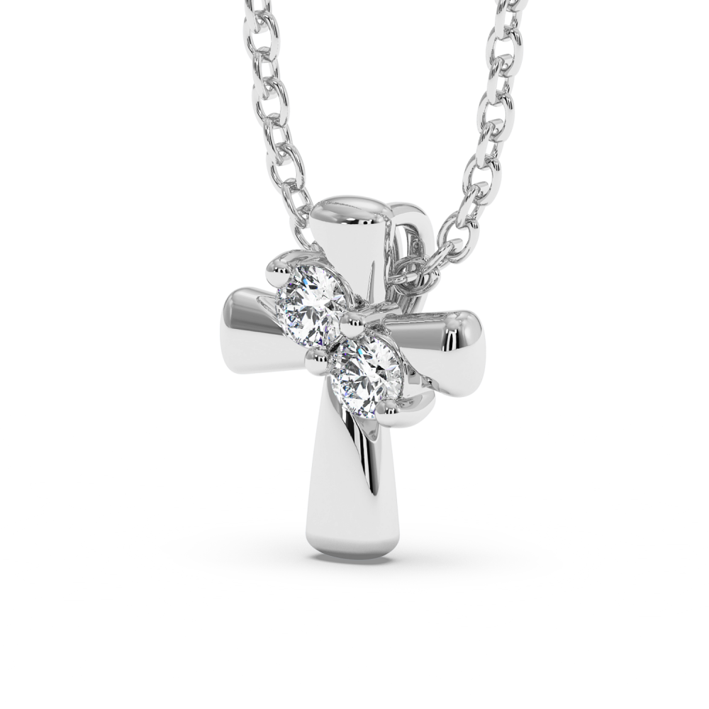 Pandantiv cruciulita din aur alb de 14 K, cu diamant de 0.07 ct. Greutatea pandantivului este de 2 grame. Lungimea pandantivului este de 9 mm. Accesati "SPECIFICATII" pentru mai multe detalii despre acest produs.