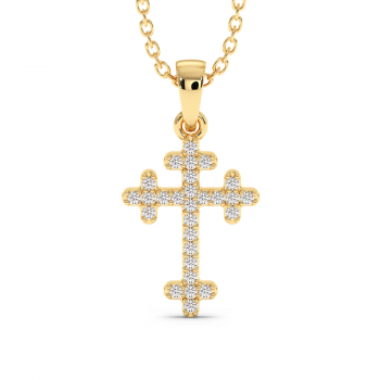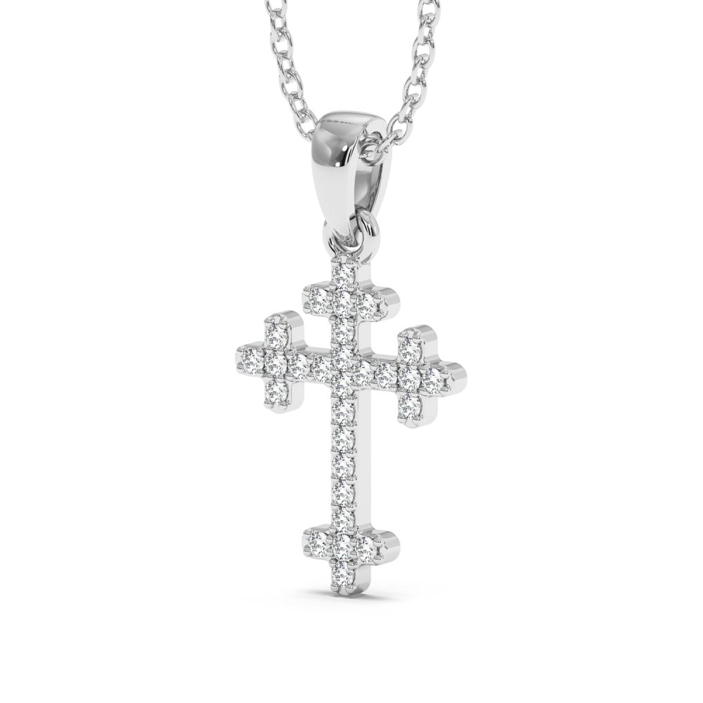 Pandantiv cruciulita din aur alb de 14 K, cu diamante de 0.10 ct. Greutatea cruciulitei este de 2.53 grame.