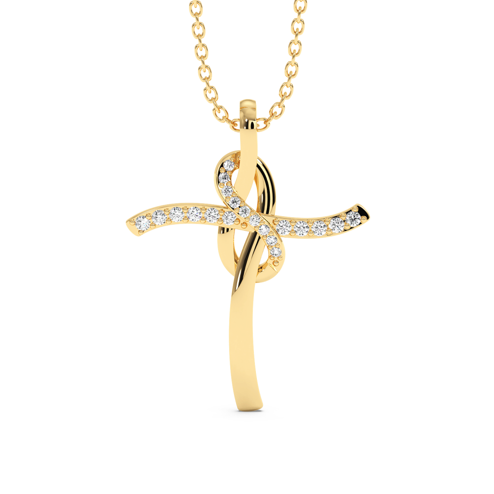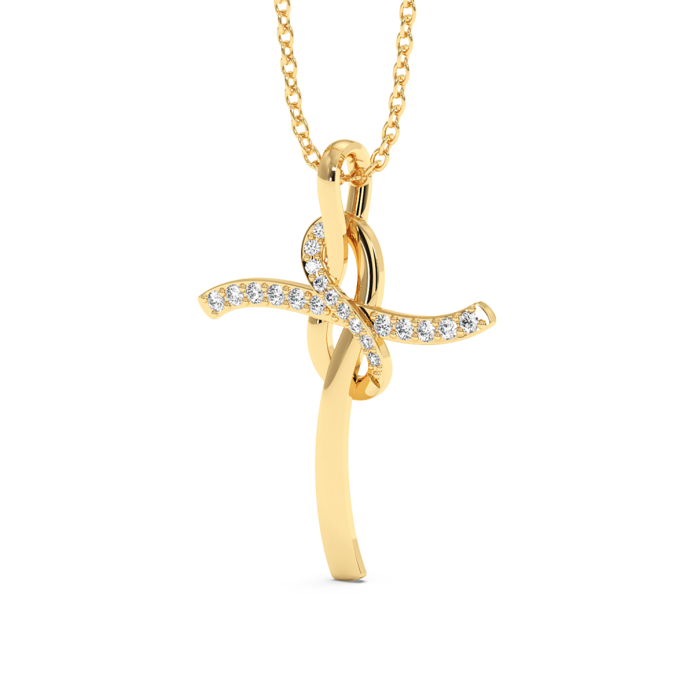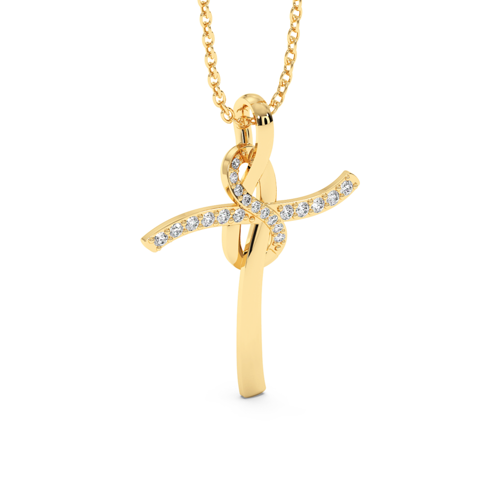 Pandantiv cruciulita din aur de 14 K, cu diamante de 0.12 ct. Greutatea cruciulitei este de aproximativ 2,70 grame.