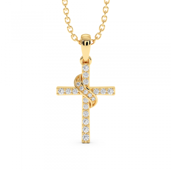 Pandantiv cruciulita din aur de 14 K, cu diamante de 0.12ct. Greutatea cruciulitei este de aproximativ 2.30 grame. Accesati "SPECIFICATII" pentru mai multe detalii despre acest produs.