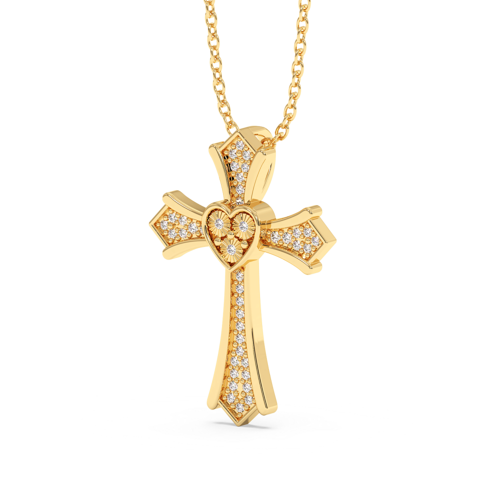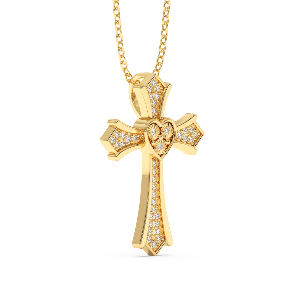 Pandantiv cruciulita din aur de 14 K, cu diamante de 0.13ct. Greutatea cruciulitei este de aproximativ 2 grame.