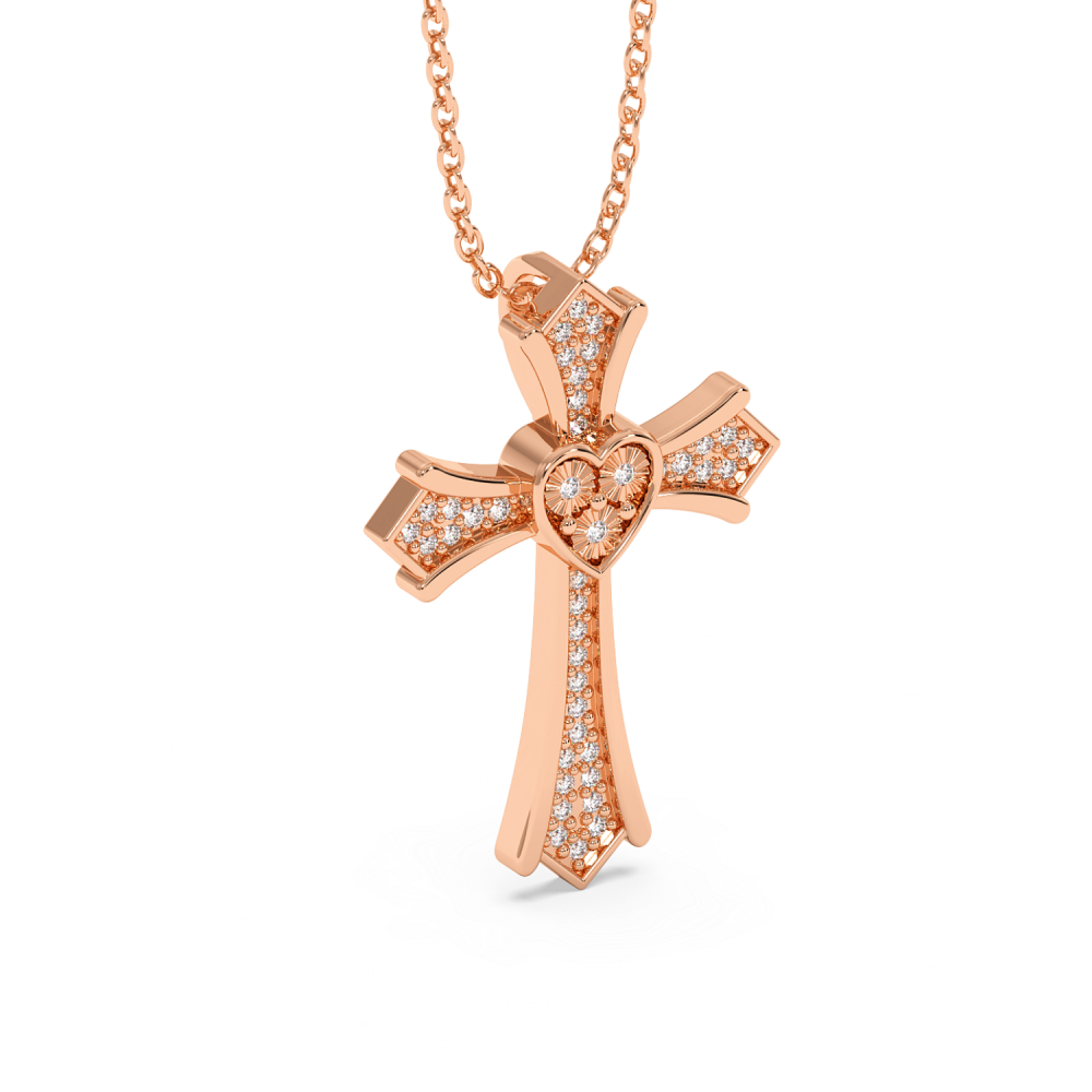 Pandantiv cruciulita din aur de 14 K, cu diamante de 0.13ct. Greutatea cruciulitei este de aproximativ 2 grame.