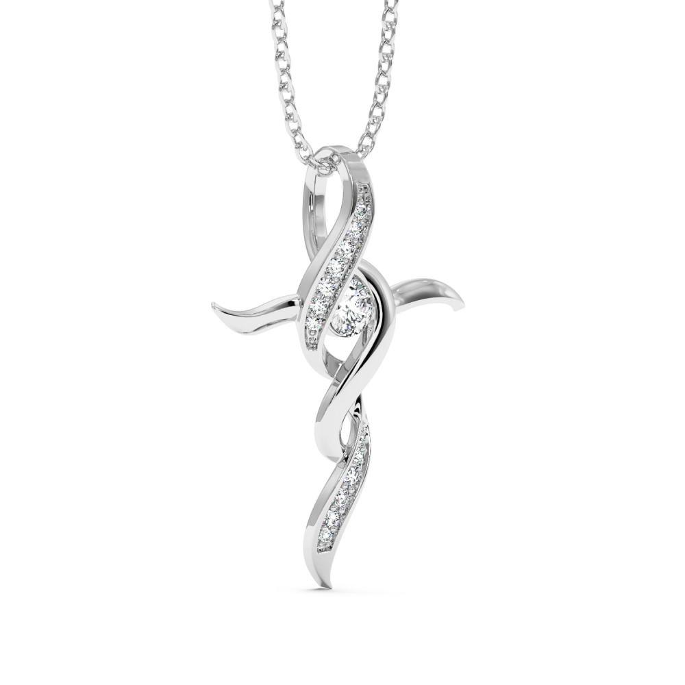 Pandantiv cruciulita din aur de 14 K, cu diamante de 0.16 ct. Greutatea cruciulitei este de aproximativ 2,60 grame.