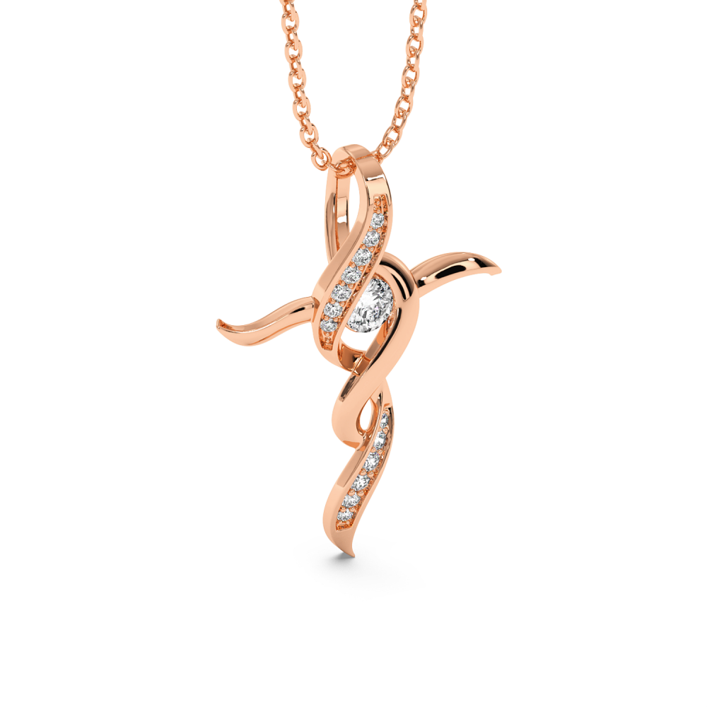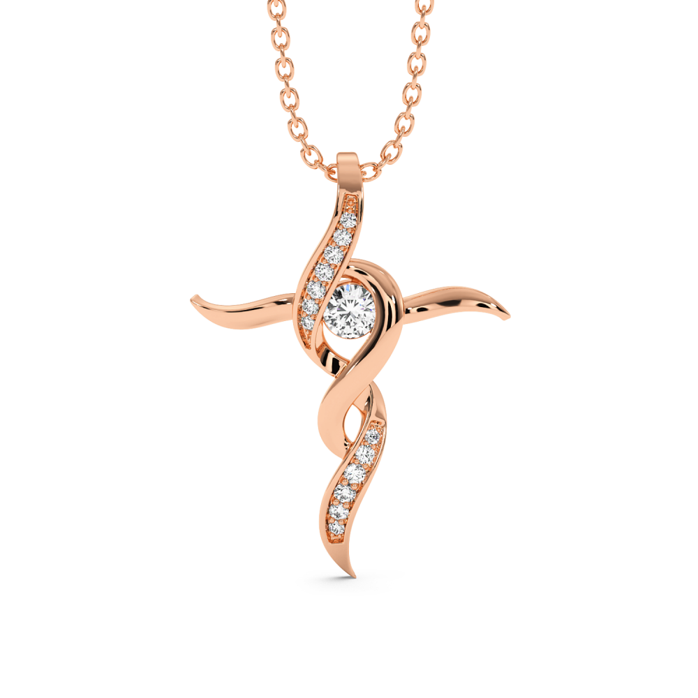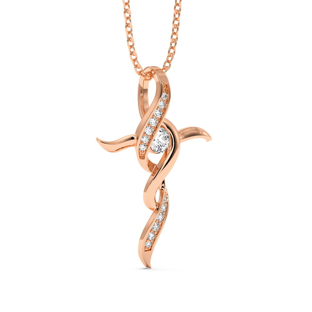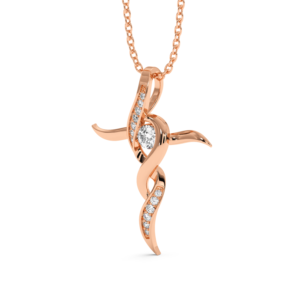 Pandantiv cruciulita din aur de 14 K, cu diamante de 0.16 ct. Greutatea cruciulitei este de aproximativ 2,60 grame.