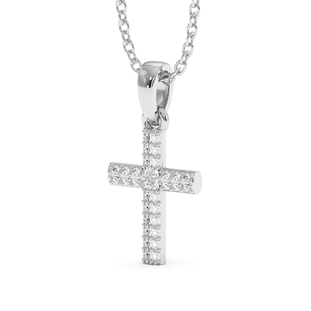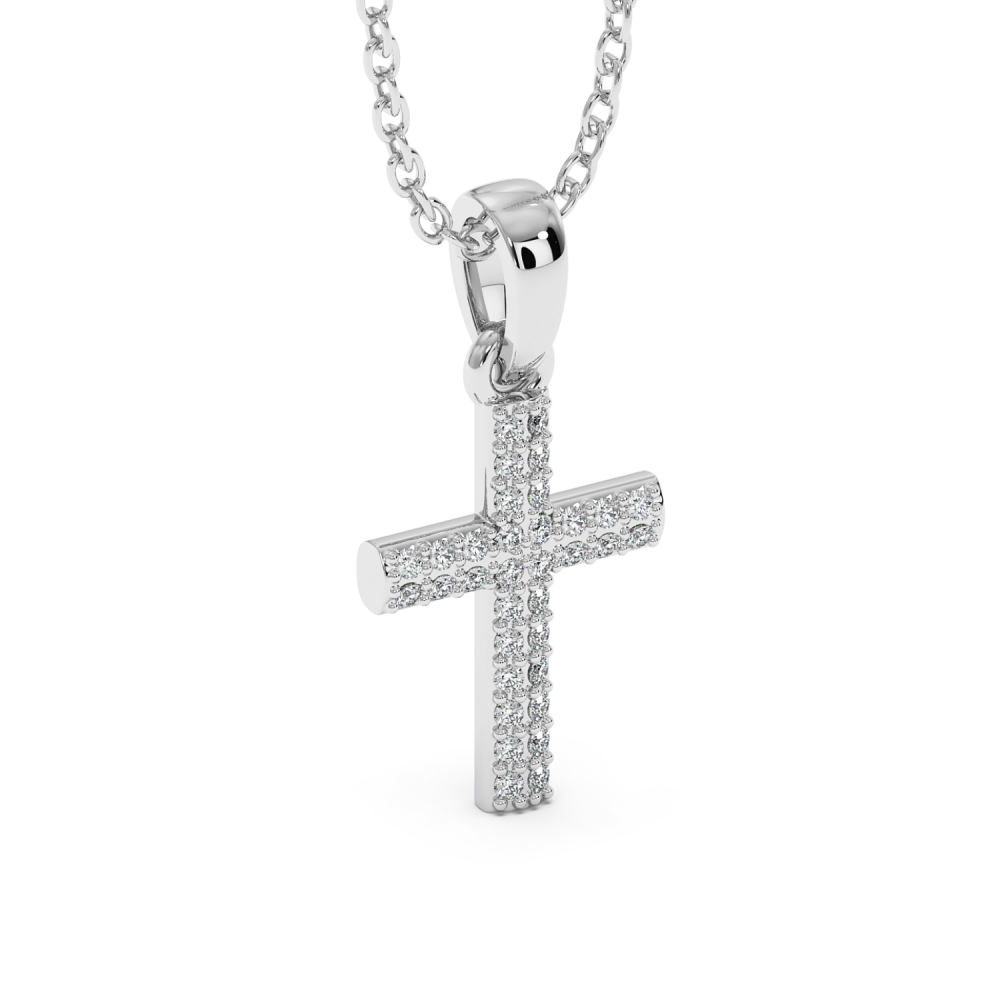 Pandantiv cruciulita din aur alb de 14 K, cu diamante de 0.17 ct. Greutatea cruciulitei este de 2.44 grame.