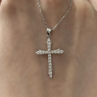 Pandantiv cruciulita din aur alb de 14 K, cu diamante de 0.21 ct. Greutatea cruciulitei este de 4.31 grame.