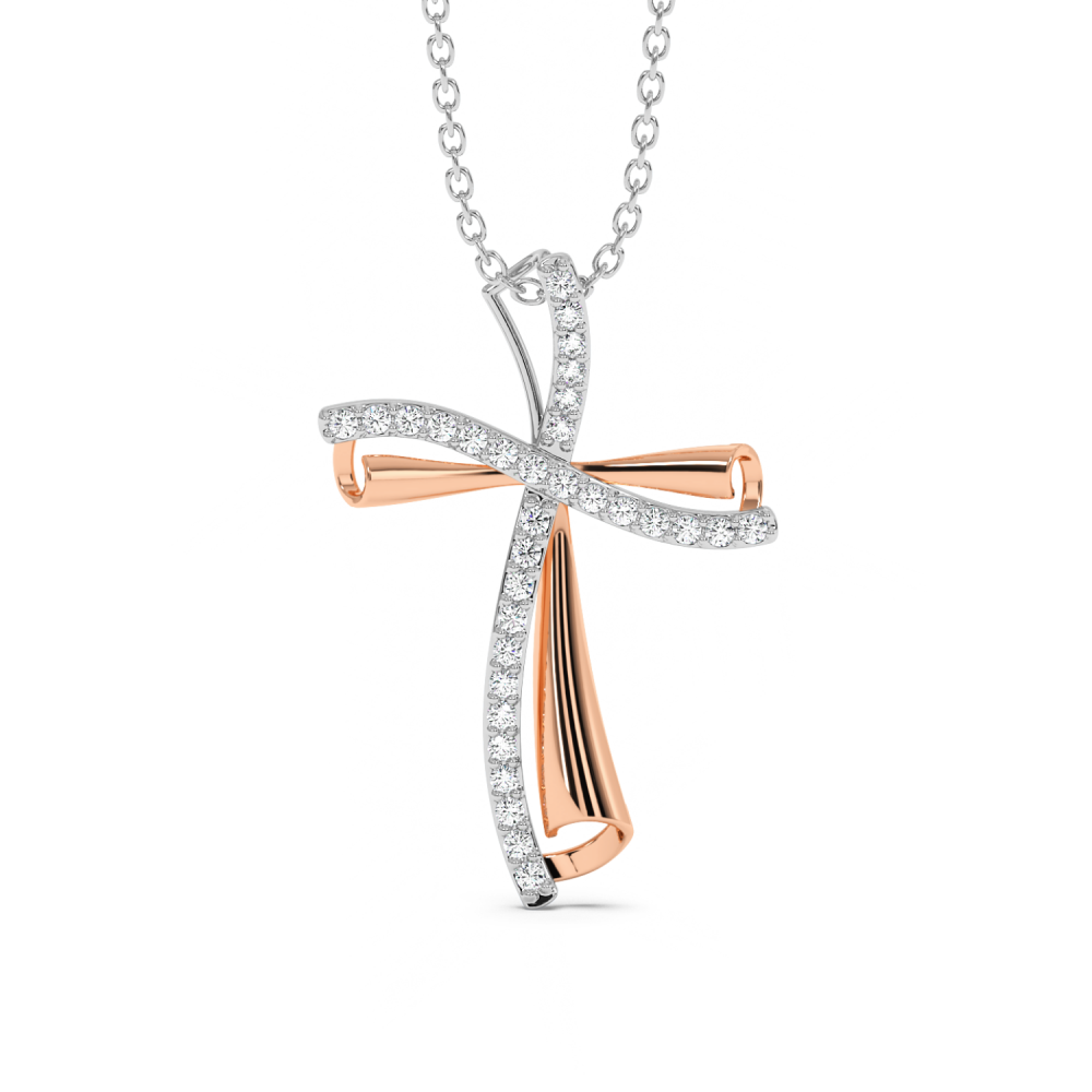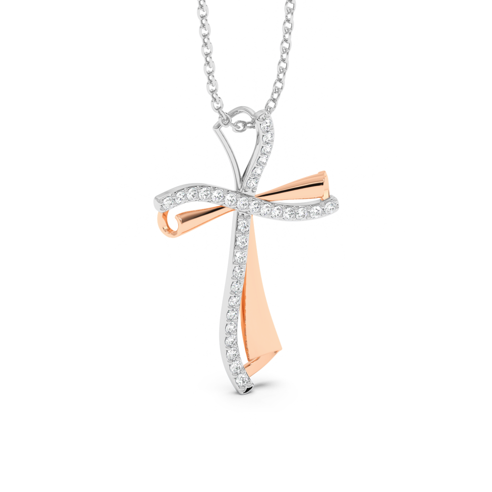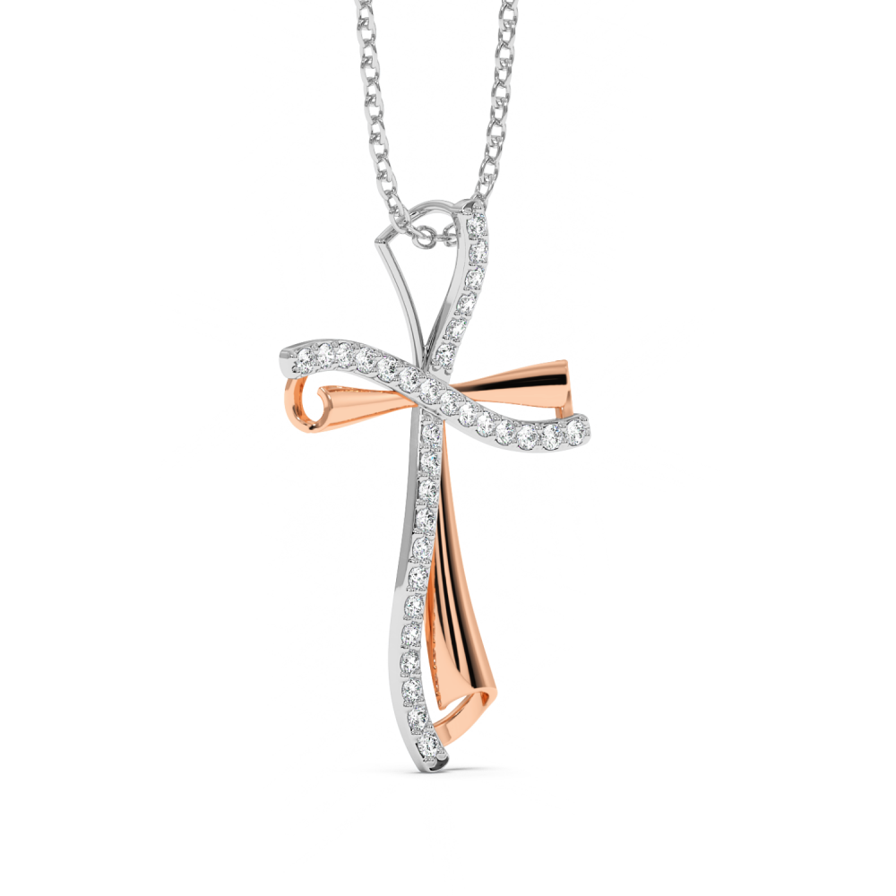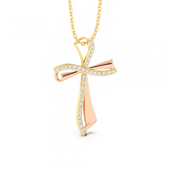 Pandantiv cruciulita din aur de 14 K, cu diamante de 0.21 ct. Greutatea cruciulitei este de aproximativ 2.50 grame.