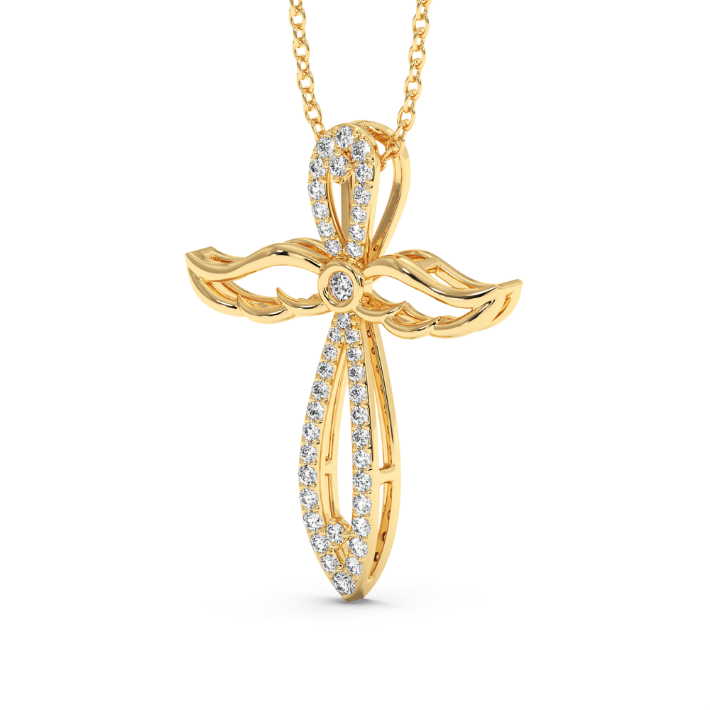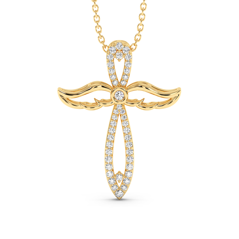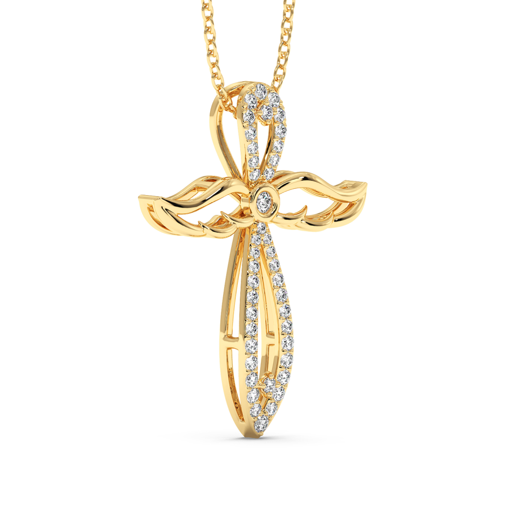 Pandantiv cruciulita din aur de 14 K, cu diamante de 0.23ct. Greutatea cruciulitei este de aproximativ 2 grame. Accesati "SPECIFICATII" pentru mai multe detalii despre acest produs.