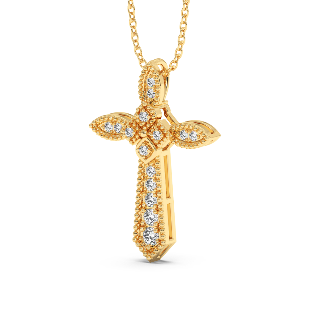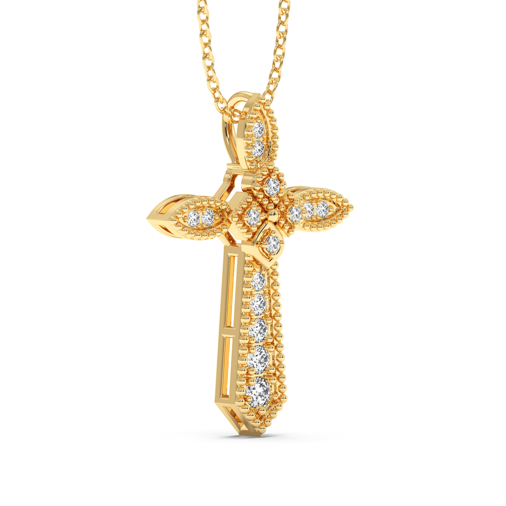 Pandantiv cruciulita din aur de 14K, cu diamante de 0.23ct. Greutatea este de aproximativ 2.50 grame. Accesati "SPECIFICATII" pentru mai multe detalii despre acest produs.