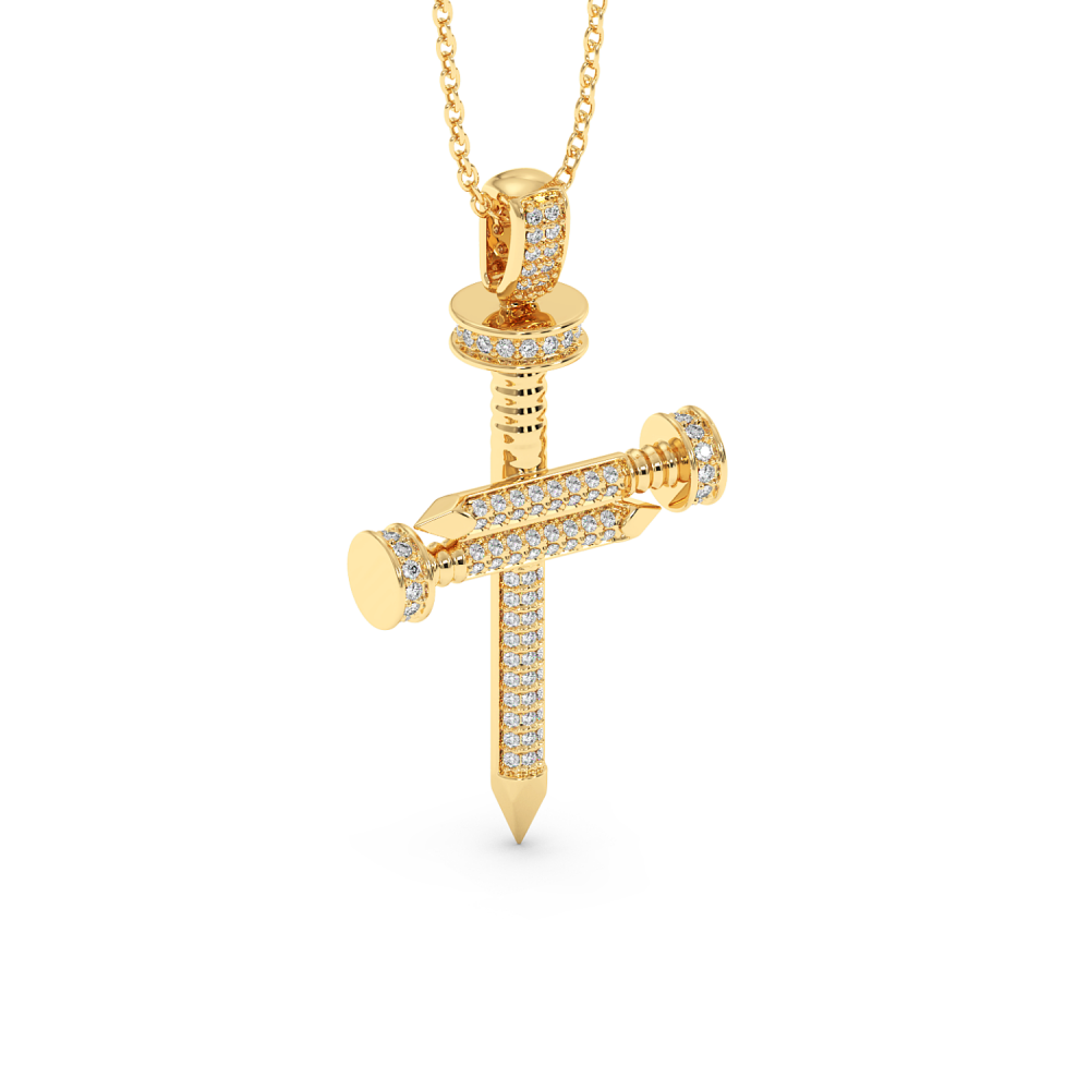 Pandantiv cruciulita din aur de 14 K, cu diamante de 0.25 ct. Greutatea cruciulitei este de 4.12 grame.
