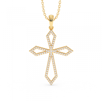 Pandantiv cruciulita din aur de 14 K, cu diamante de 0.26ct. Greutatea cruciulitei este de aproximativ 1.30 grame. Accesati "SPECIFICATII" pentru mai multe detalii despre acest produs.