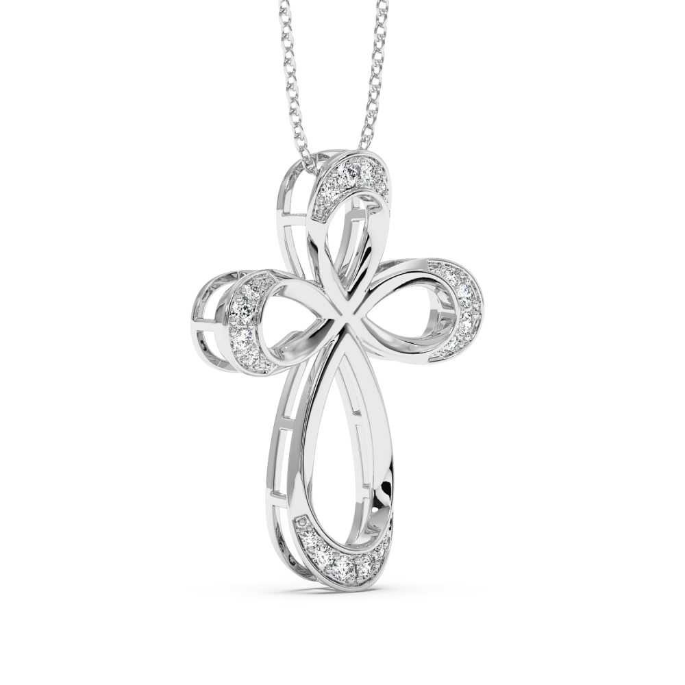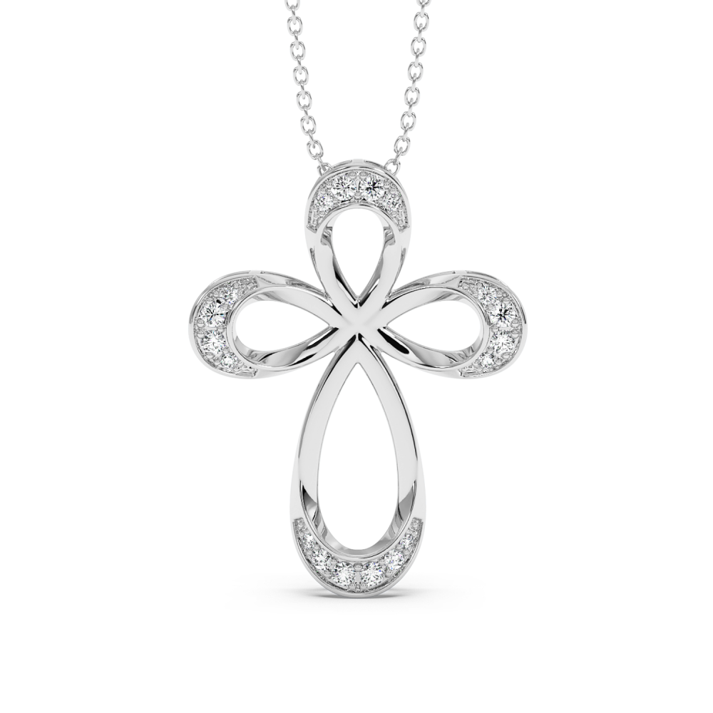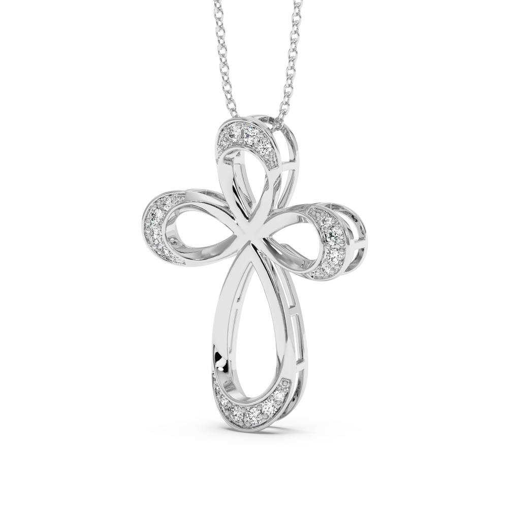 Pandantiv cruciulita din aur alb de 14 K, cu diamante de 0.26ct. Greutatea este de aproximativ 4.02 grame. Lungimea cruciulitei este de 2.94cm. Pandantivul se poate face pe comanda si din aur de 18K, galben sau rose. Gramajele si caratajele sunt aproximative. Putem modifica designul in functie de bugetul dumneavoastra.