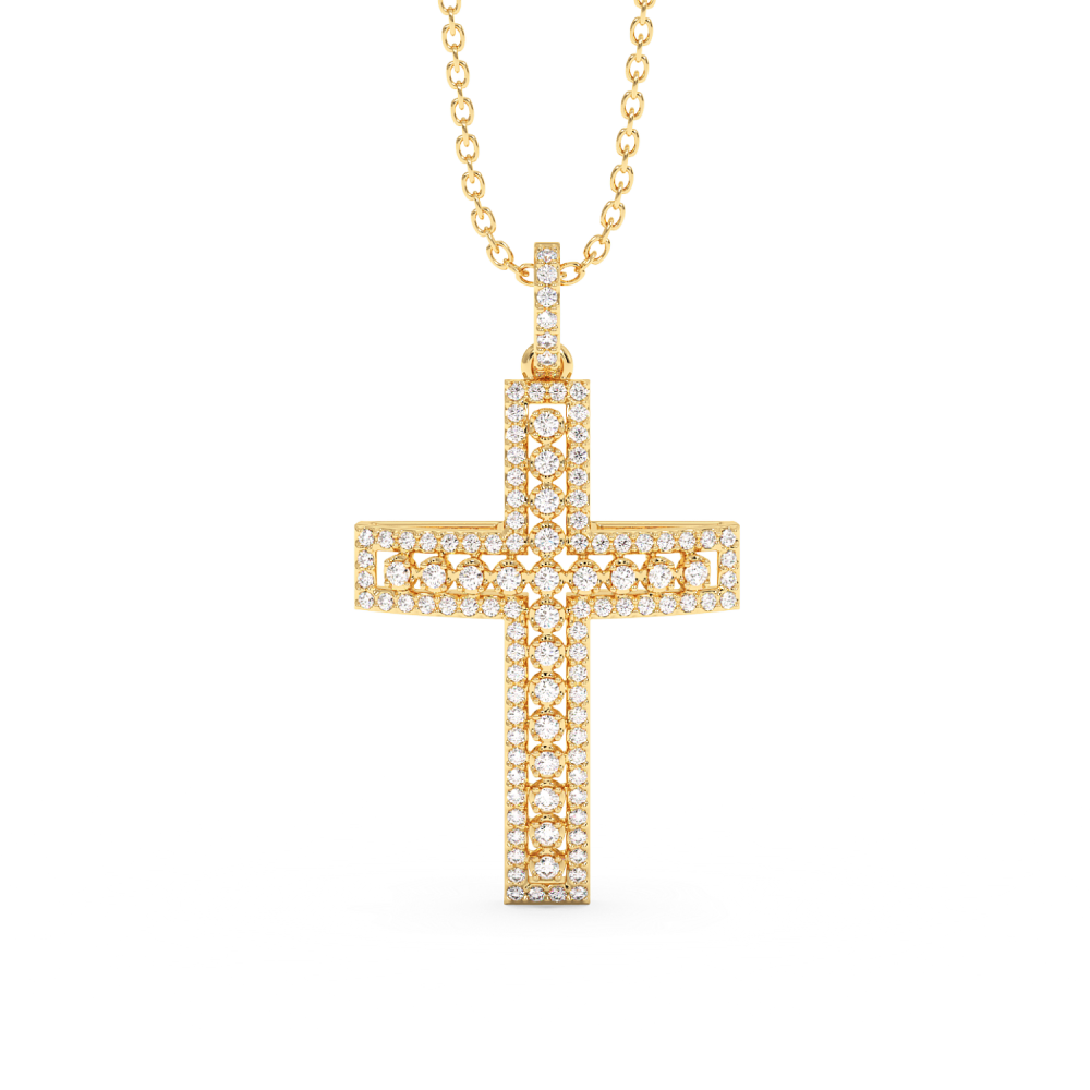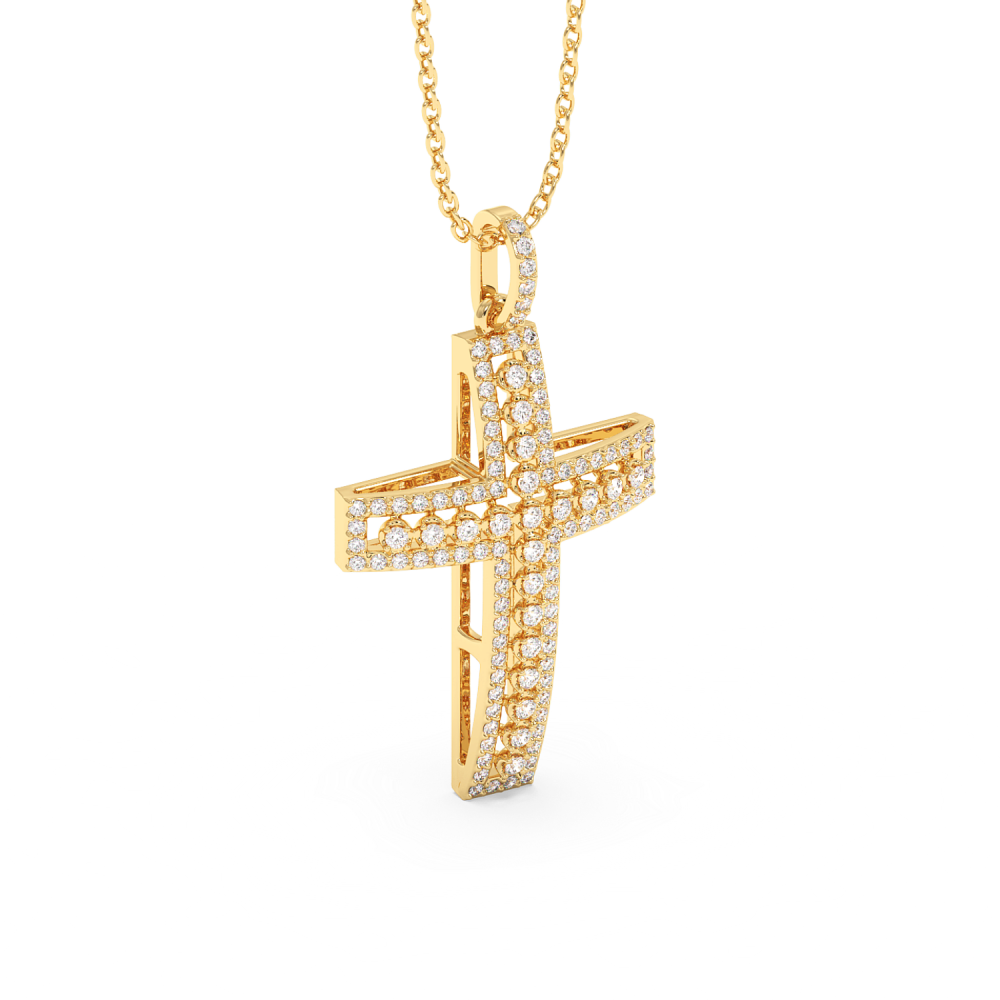 Pandantiv cruciulita din aur de 14 K, cu diamante de 0.28ct. Greutatea cruciulitei este de aproximativ 2.20 grame.