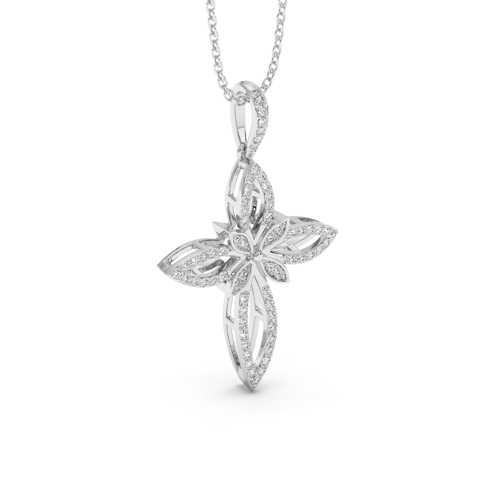 Pandantiv cruciulita din aur alb de 14 K, cu diamante de 0.28ct. Greutatea cruciulitei este de aproximativ 4 grame. Accesati  "SPECIFICATII" pentru mai multe detalii despre acest produs.