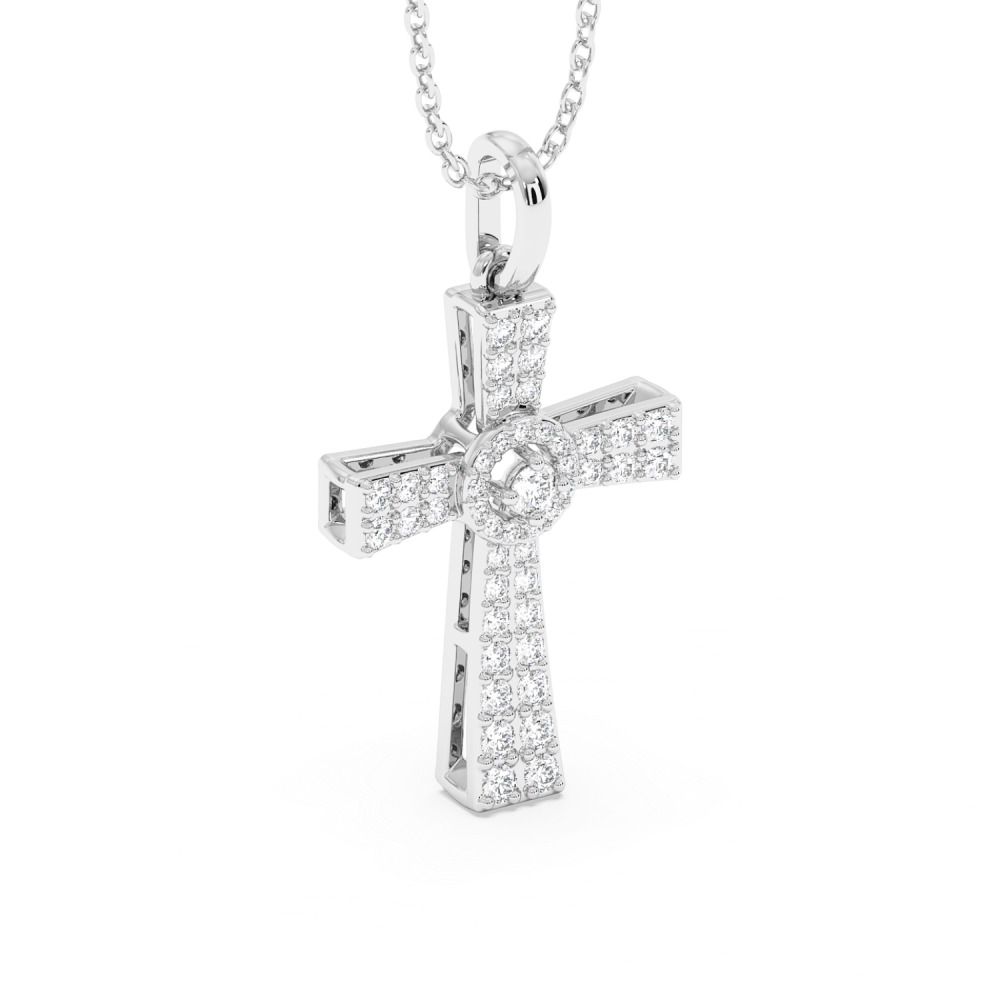 Pandantiv cruciulita din aur de 14 K, cu diamante de 0.29ct. Greutatea cruciulitei este de aproximativ 2 grame.