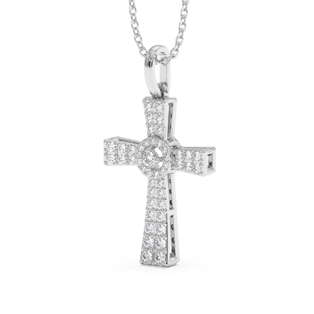 Pandantiv cruciulita din aur de 14 K, cu diamante de 0.29ct. Greutatea cruciulitei este de aproximativ 2 grame. Accesati "SPECIFICATII" pentru mai multe detalii despre acest produs.