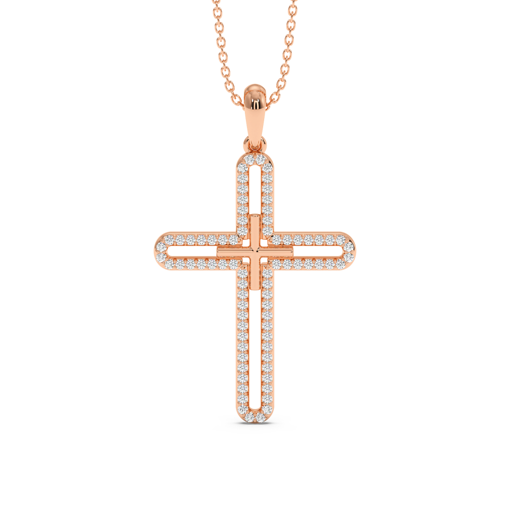 Pandantiv cruciulita din aur de 14 K, cu diamante de 0.29ct. Greutatea cruciulitei este de aproximativ 3.70 grame.