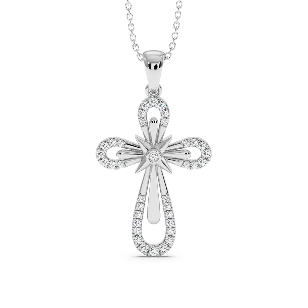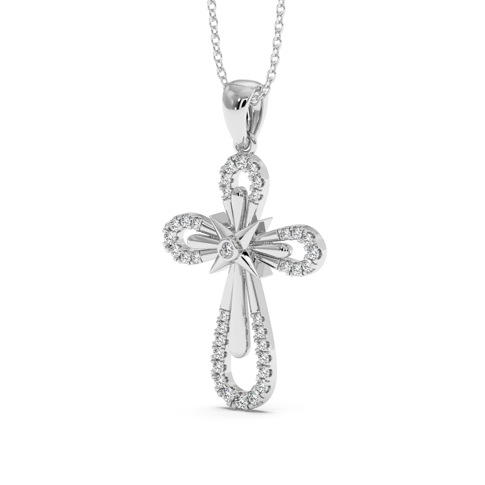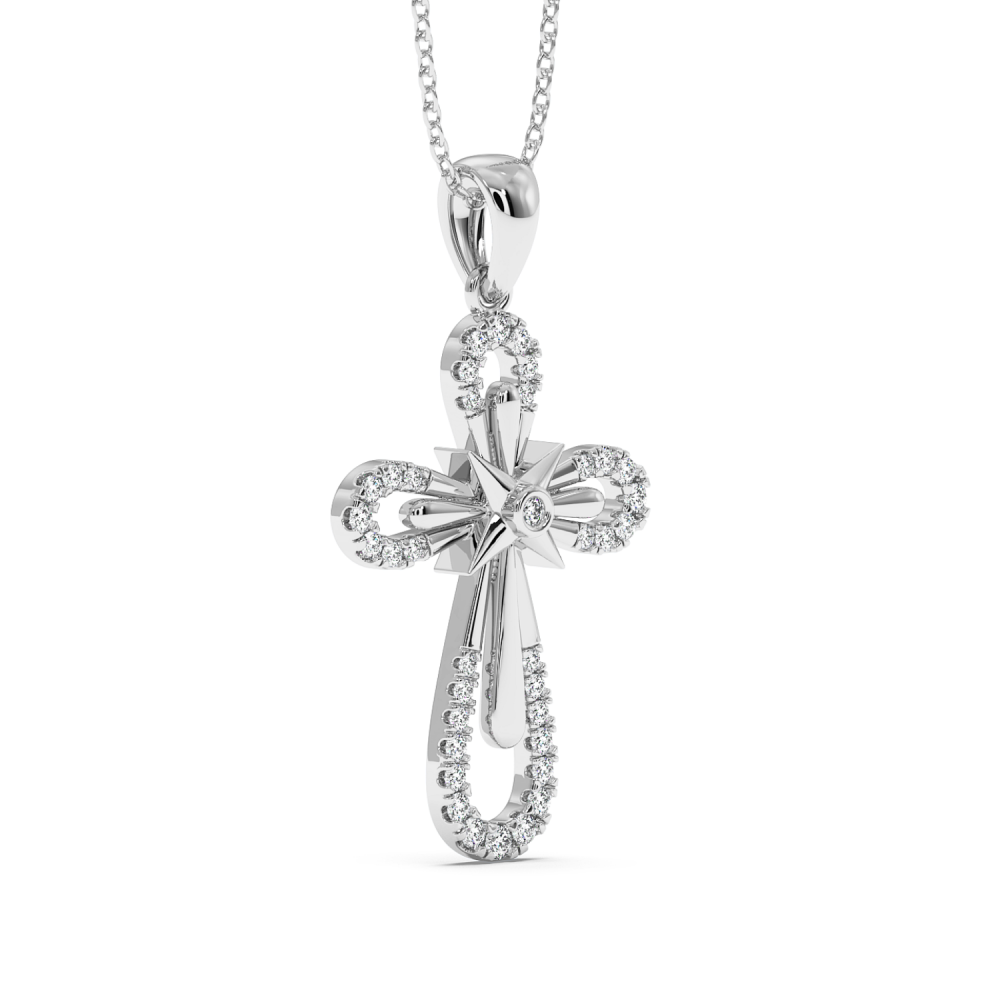 Pandantiv cruciulita din aur de 14 K, cu diamante de 0.29ct. Greutatea cruciulitei este de aproximativ 3.30 grame. Accesati "SPECIFICATII" pentru mai multe detalii despre acest produs.