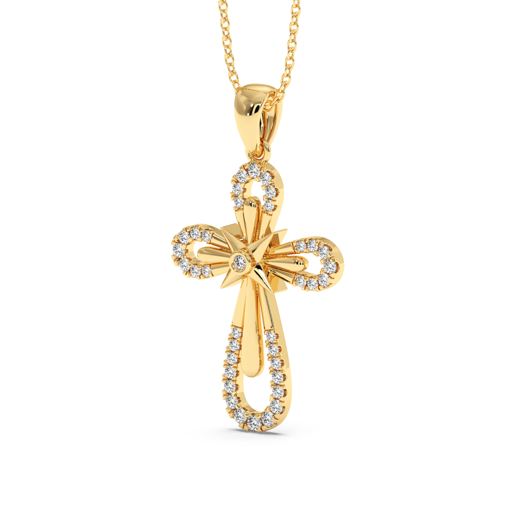 Pandantiv cruciulita din aur de 14 K, cu diamante de 0.29ct. Greutatea cruciulitei este de aproximativ 3.30 grame.