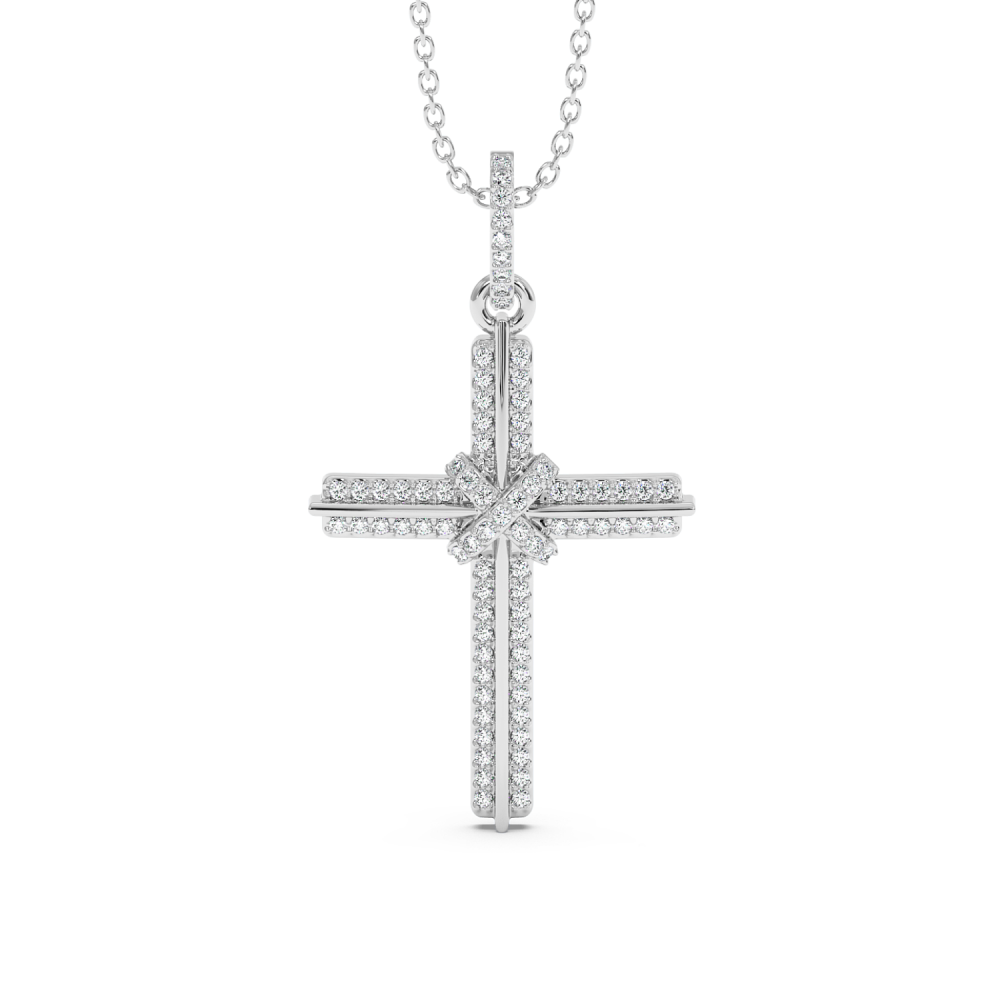 Pandantiv cruciulita din aur de 14 K, cu diamante de 0.32ct. Greutatea cruciulitei este de aproximativ 6.50 grame. Accesati "SPECIFICATII" pentru mai multe detalii despre acest produs.