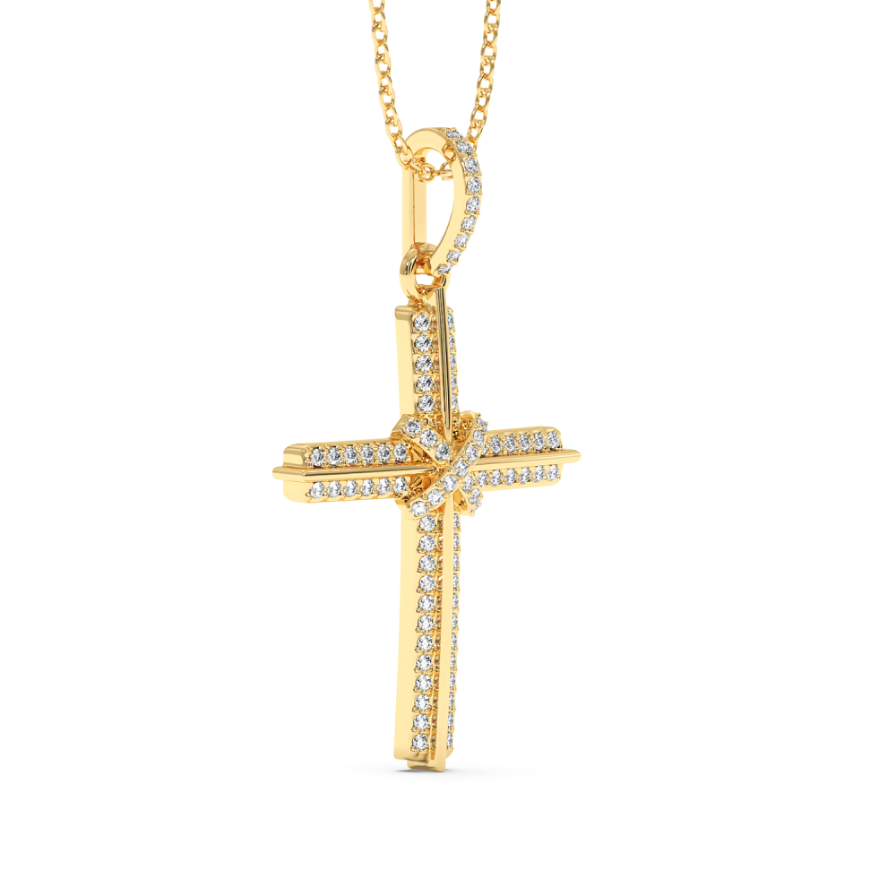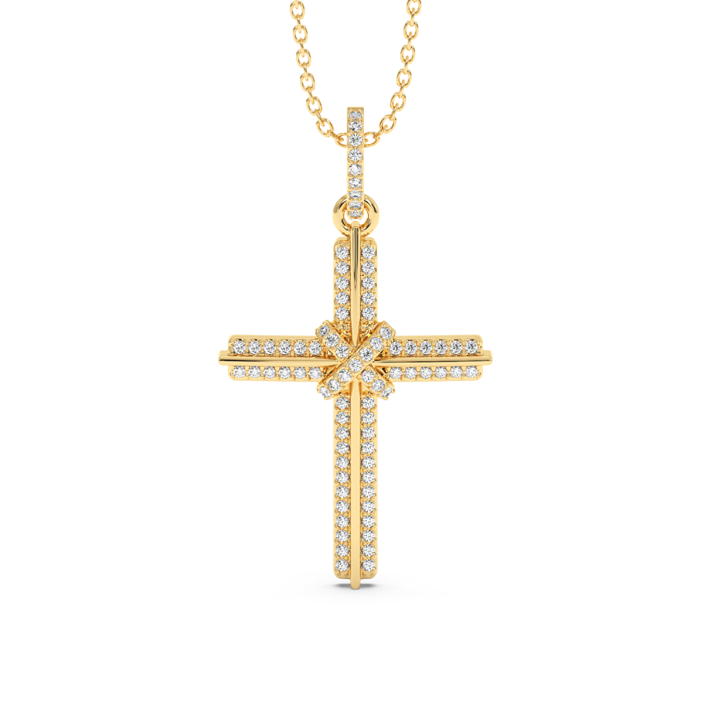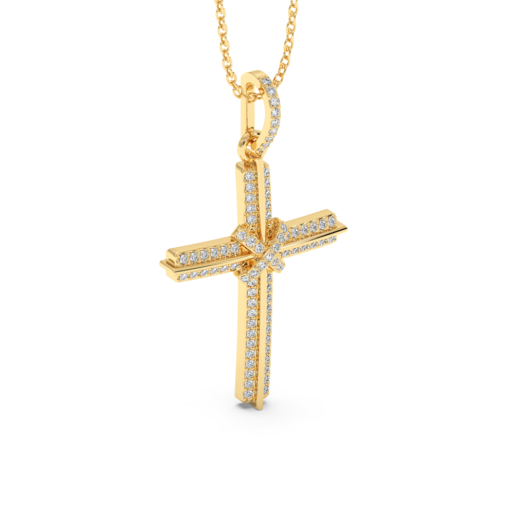 Pandantiv cruciulita din aur de 14 K, cu diamante de 0.32ct. Greutatea cruciulitei este de aproximativ 6.50 grame. Accesati "SPECIFICATII" pentru mai multe detalii despre acest produs.