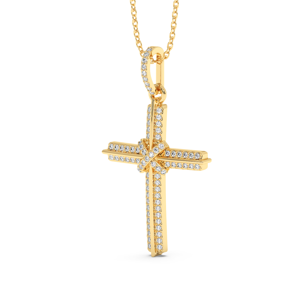 Pandantiv cruciulita din aur de 14 K, cu diamante de 0.32ct. Greutatea cruciulitei este de aproximativ 6.50 grame.