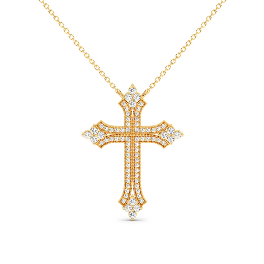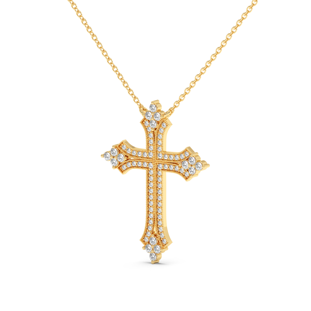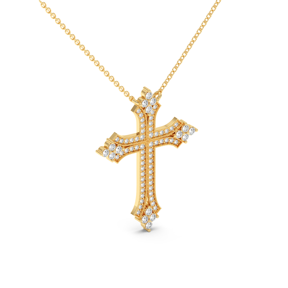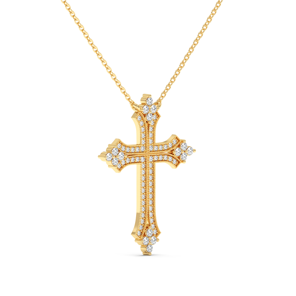 Pandantiv cruciulita din aur de 14 K, cu diamante de 0.33 ct. Greutatea cruciulitei este de aproximativ 3.00 grame.