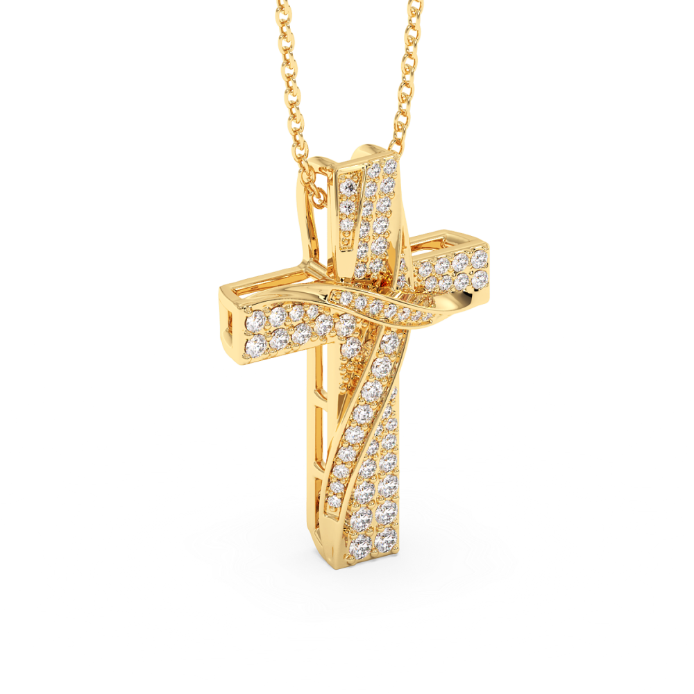 Pandantiv cruciulita din aur de 14 K, cu diamante de 0.33ct. Greutatea cruciulitei este de aproximativ 3.60 grame.